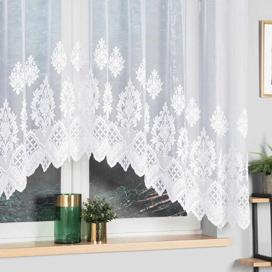 LUDMIŁA to firanka, która zachwyca swoją delikatnością i wyrafinowanym stylem. Jej piękny, biały żakard w elegancki, kwiatowy wzór przyciąga wzrok, a efektowne, podcięte wykończenie dodaje całości lekkości i dekoracyjnego charakteru. Rozmiar 300x160 cm sprawia, że firanka doskonale pasuje do okien w kuchni, jadalni, salonie czy sypialni, wprowadzając do wnętrza subtelny, a zarazem efektowny akcent.