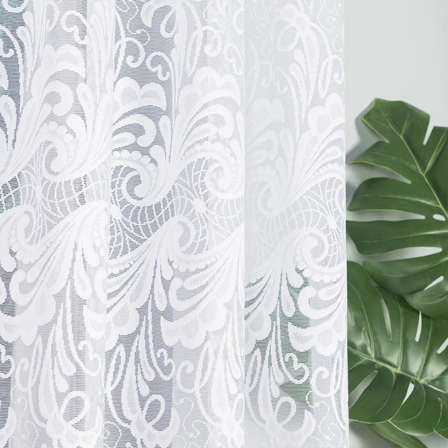 IWONA to firanka, która łączy w sobie klasyczne piękno i subtelne detale. Wykonana z białego żakardu, zachwyca bogatym motywem roślinnym, ułożonym na tle delikatnej siateczki 🌿 Tkanina jest lekka, półtransparentna i świetnie rozprasza światło, wprowadzając do wnętrza przyjemną atmosferę ✨