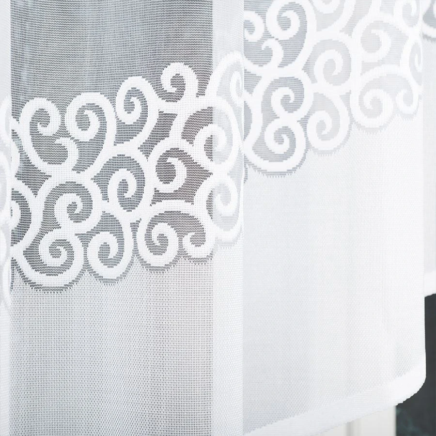 Chcesz odmienić swoje okno i dodać mu subtelnej elegancji? Firanka DANIELA w białym kolorze to perfekcyjny wybór! 🌸 Wykonana z trwałego żakardowego materiału, zachwyca pięknym, spiralnym wzorem i efektownym podcięciem na dole, które wprowadza lekkość i delikatny charakter. Rozmiar 300x140 cm sprawia, że świetnie pasuje do większych okien w kuchni, salonie czy jadalni, tworząc przytulną, a jednocześnie stylową przestrzeń.