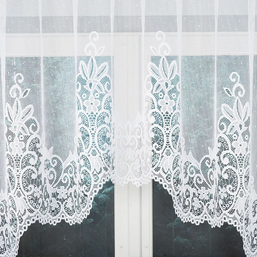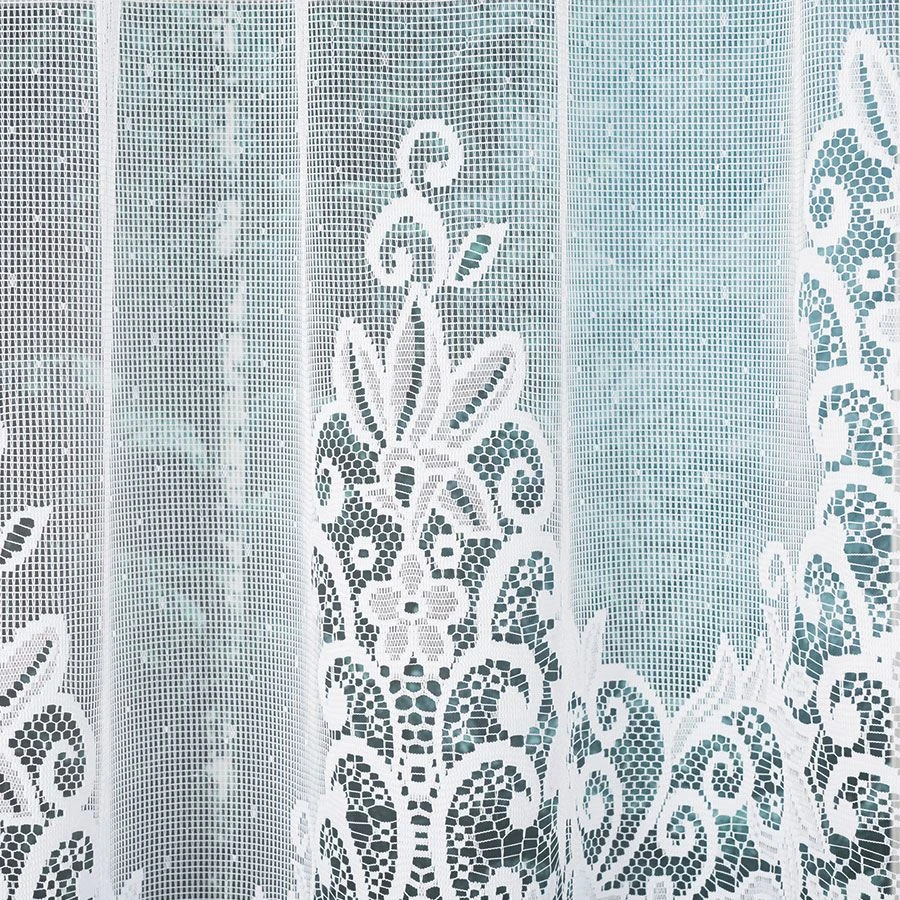Gotowa firanka żakardowa BERENIKA o wymiarach 330x120 cm to idealna propozycja dla osób, które szukają eleganckiej, a zarazem praktycznej dekoracji okiennej. Jej biały kolor, bogaty wzór i efektowne podcięcie na dole sprawiają, że okno staje się centralnym punktem aranżacji. Misternie tkane florystyczne motywy pięknie rozpraszają światło, nadając wnętrzu przytulności, a jednocześnie nie ograniczając dostępu do naturalnego światła.