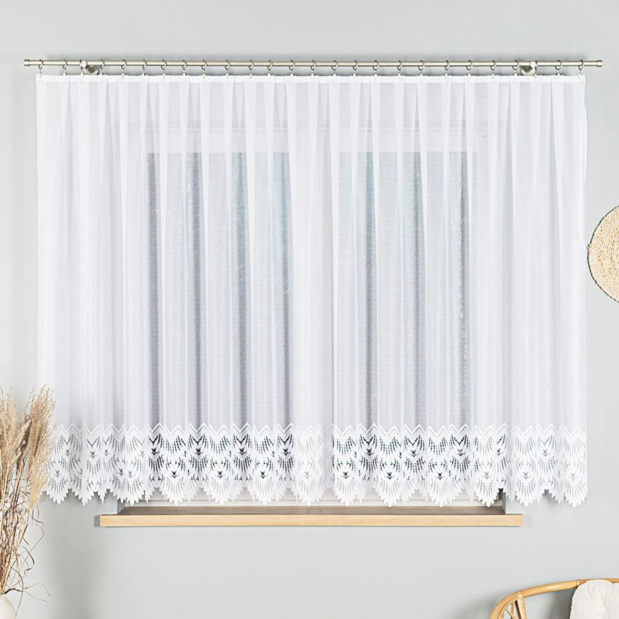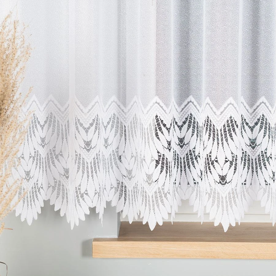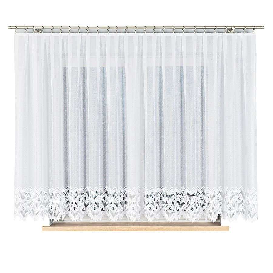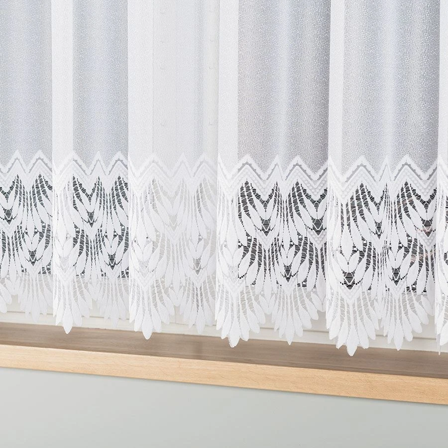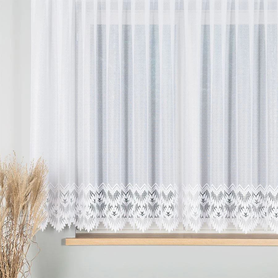 Gramatura:100g/m2Raport:10,5cmTyp/Rodzaj:żakardKolor:białySkład:100% Poliester