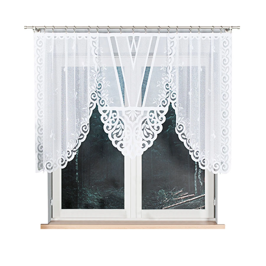 - ✨ Podcięcie w łuk – nadaje firance wyjątkowy, ozdobny charakter.
