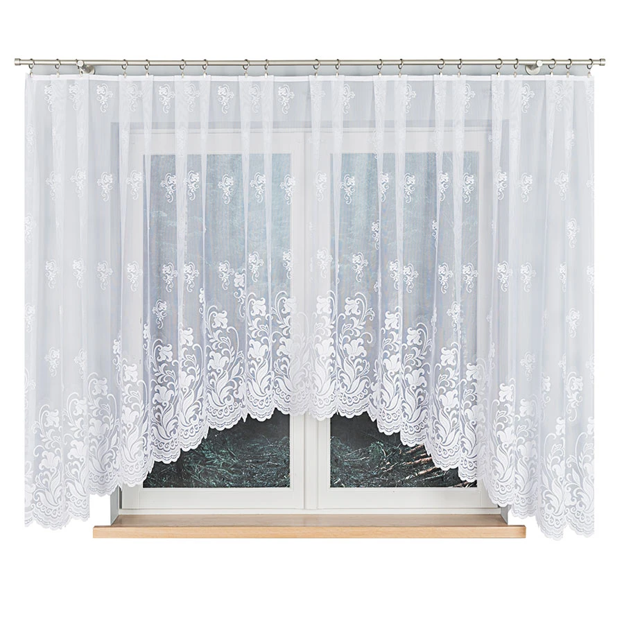 Chcesz dodać wnętrzu lekkości i klasy? ✨ Firanka MARZENA to gotowy model o wymiarach 500x160 cm, wykonany z białego żakardu, który zachwyca dekoracyjnym podcięciem u dołu. To rozwiązanie nie tylko pięknie eksponuje okno, ale też dodaje wnętrzu przytulności. 🪟🤍