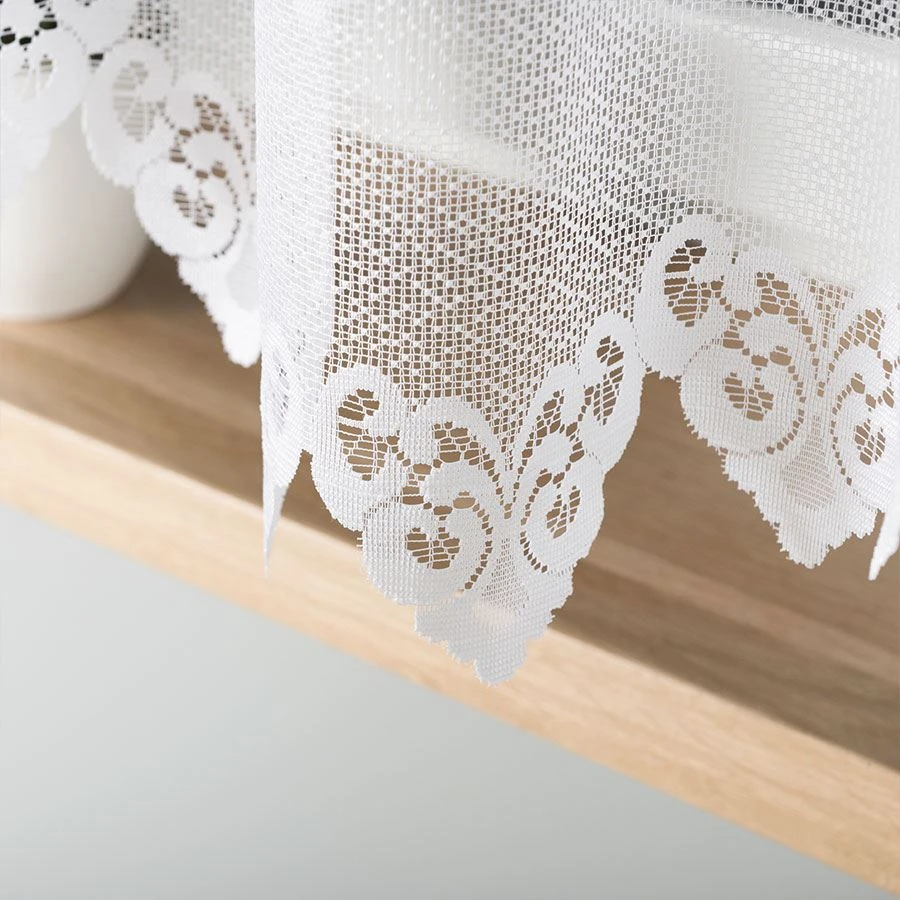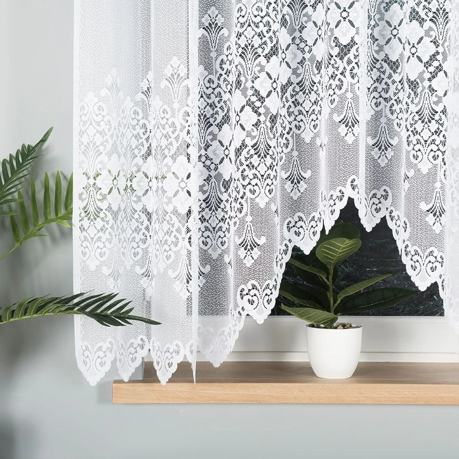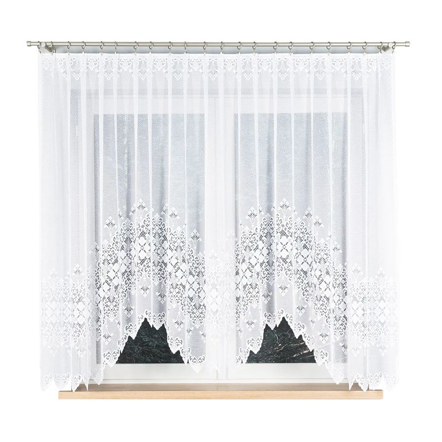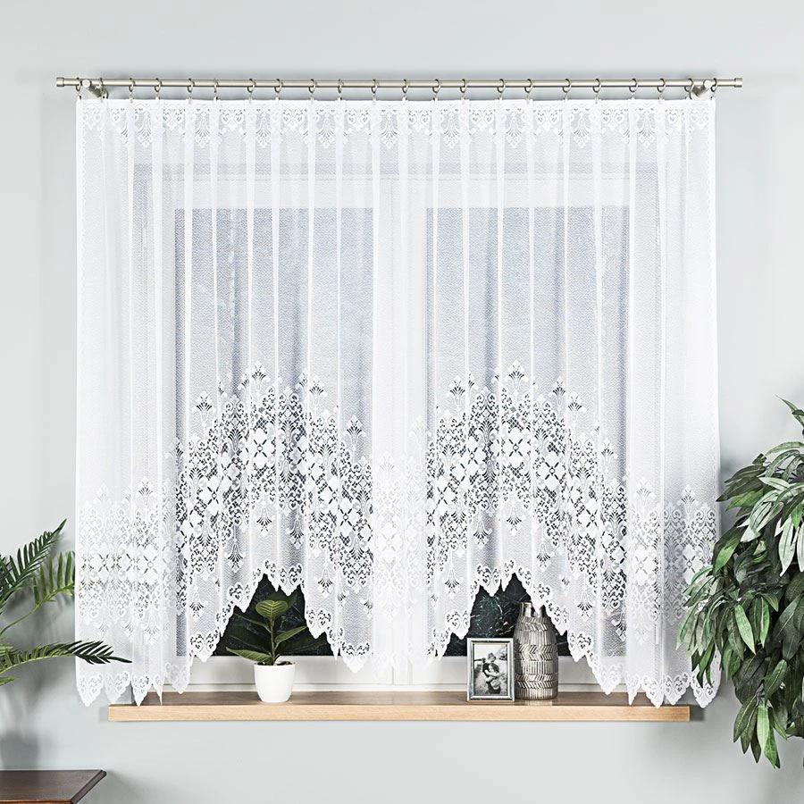 NADIA to firanka, która z łatwością odmieni każde wnętrze. Dzięki perfekcyjnie dopracowanemu wzornictwu i starannie wykończonemu dołowi, stanowi nie tylko funkcjonalny, ale również dekoracyjny element wystroju. Model w rozmiarze 300x160 cm sprawdzi się zarówno w kuchni, jadalni, jak i w klasycznie urządzonym salonie – idealnie dopasowuje się do średnich i większych okien, tworząc spójną, przytulną kompozycję.
