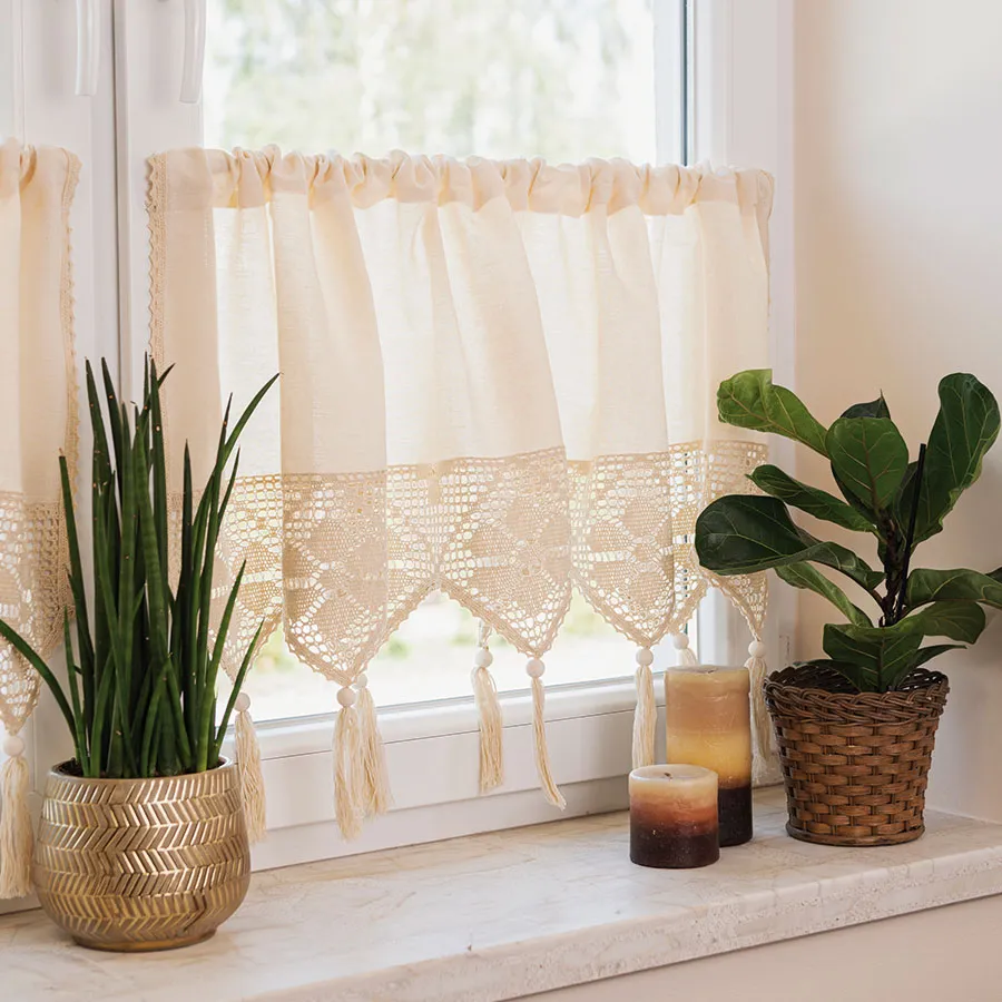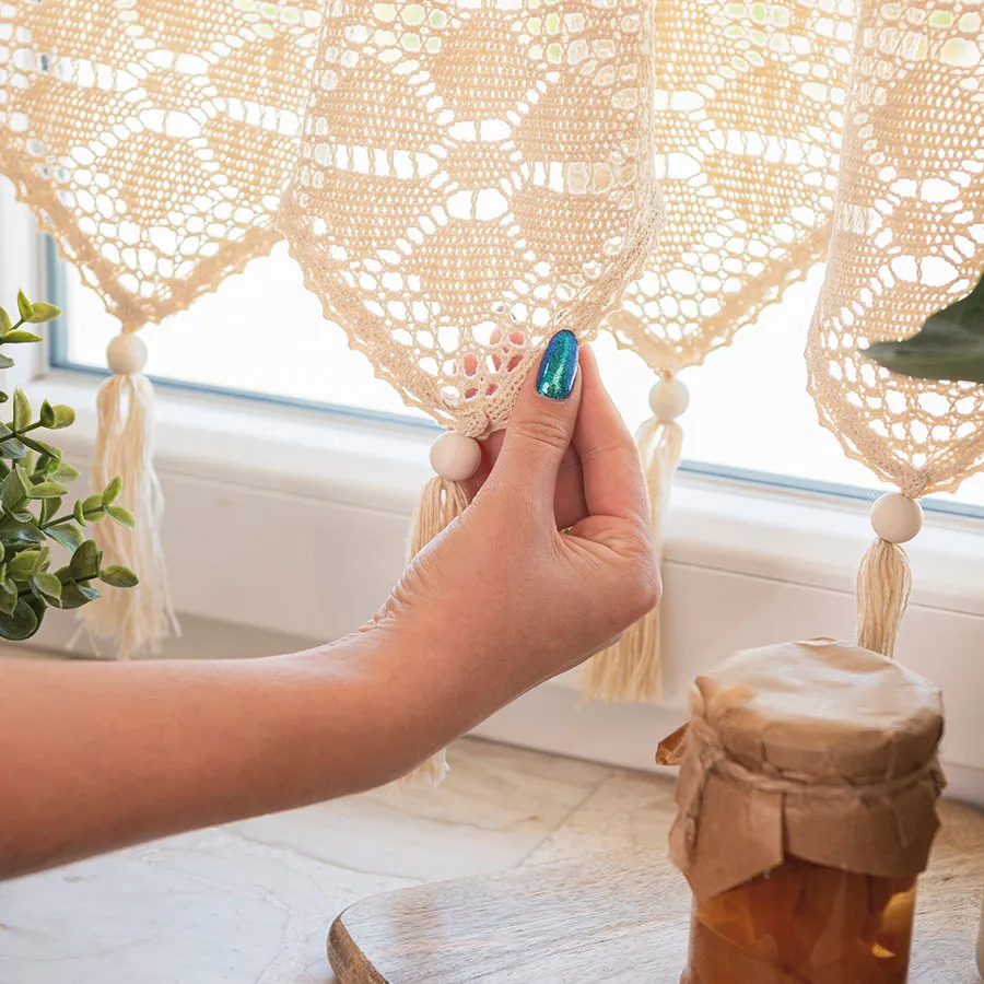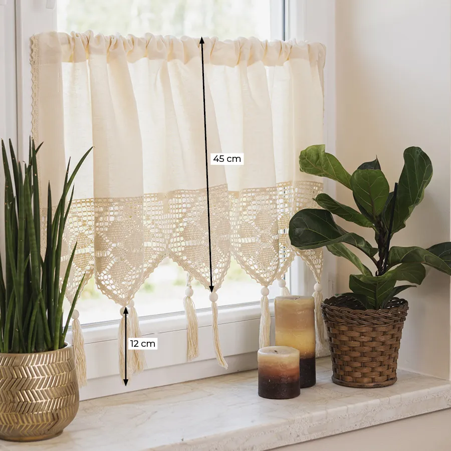 Odmień swoje wnętrze dzięki zazdrostce RACHELA w kremowym kolorze, o wymiarach 200x45 cm! To gotowa firanka z efektownym, ażurowym dołem, która zachwyca subtelnym wzorem i naturalną kolorystyką. Zazdrostka RACHELA to połączenie klasycznej elegancji z nutą stylu boho i rustykalnego – jej kremowy odcień rozświetla przestrzeń, a misterny ażur z frędzlami i koralikami wprowadza przytulny klimat inspirowany naturą. Wykonana z wysokiej jakości bawełny z domieszką poliestru, jest miękka, trwała i łatwa w pielęgnacji. Taki dodatek doskonale komponuje się z zielenią roślin i dodatkami z naturalnych materiałów, tworząc wyjątkową atmosferę w każdym domu. 🤍