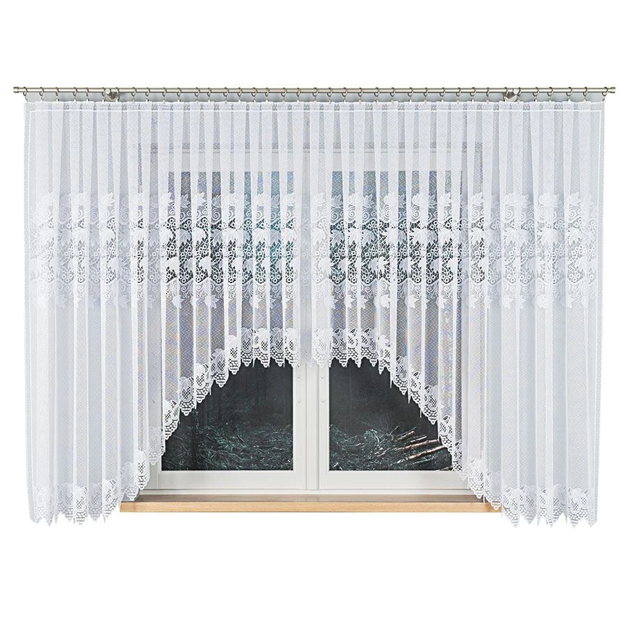 Firanka gotowa żakardowa ELŻBIETA to ponadczasowa propozycja dla osób, które cenią klasyczne, eleganckie wykończenie okna. Biały kolor i ornamentalny wzór pięknie dopełniają aranżację, a ozdobne podcięcie na dole tworzy lekki, dekoracyjny efekt.