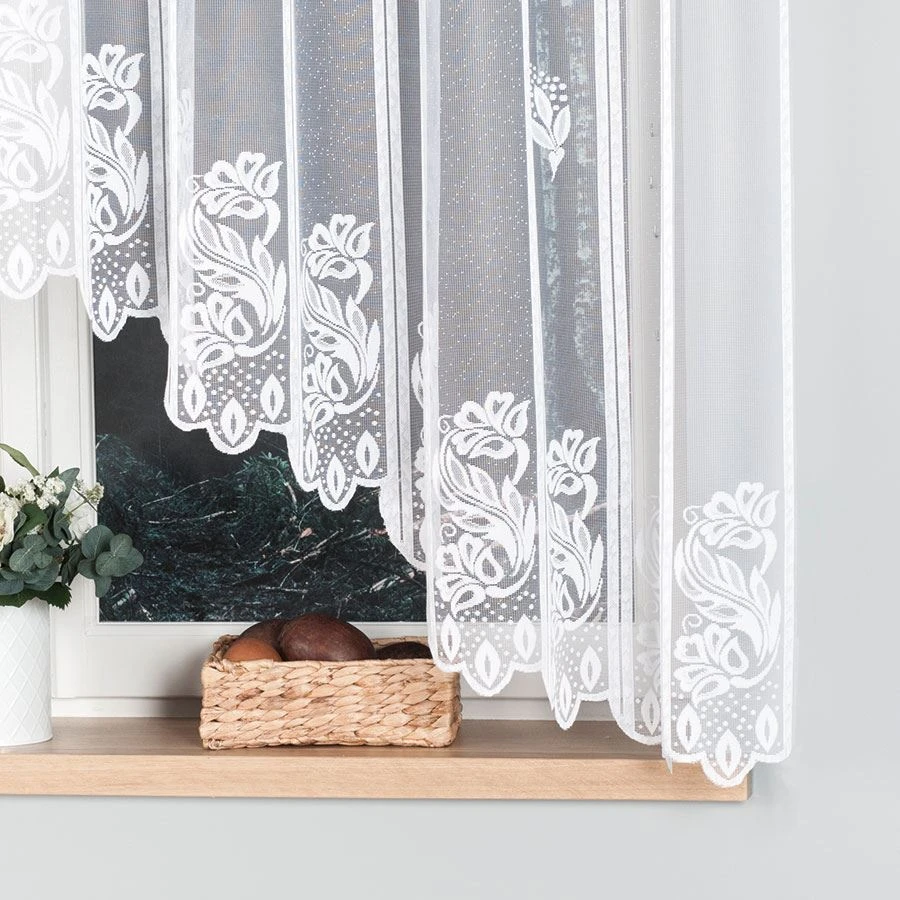 Firanka BEATA 340x160 cm – biały żakard z kwiatowym wzorem i podcięciem