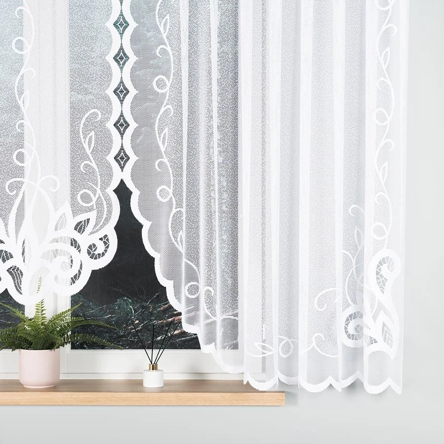 Firanka EWELINA doskonale sprawdzi się w salonie, kuchni, jadalni, a także w tradycyjnie urządzonych sypialniach. Jej subtelny biały kolor i dekoracyjne detale wprowadzają do wnętrza lekkość, światło i styl.