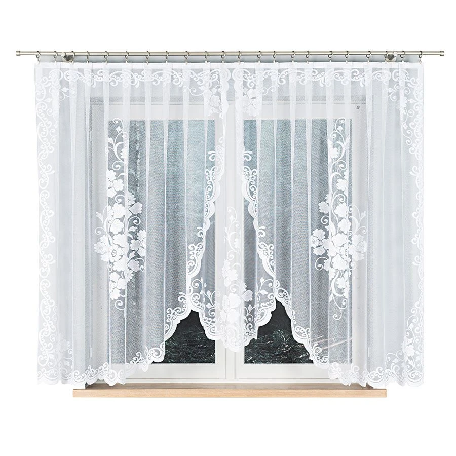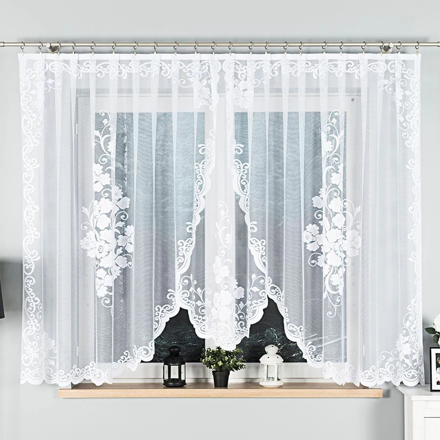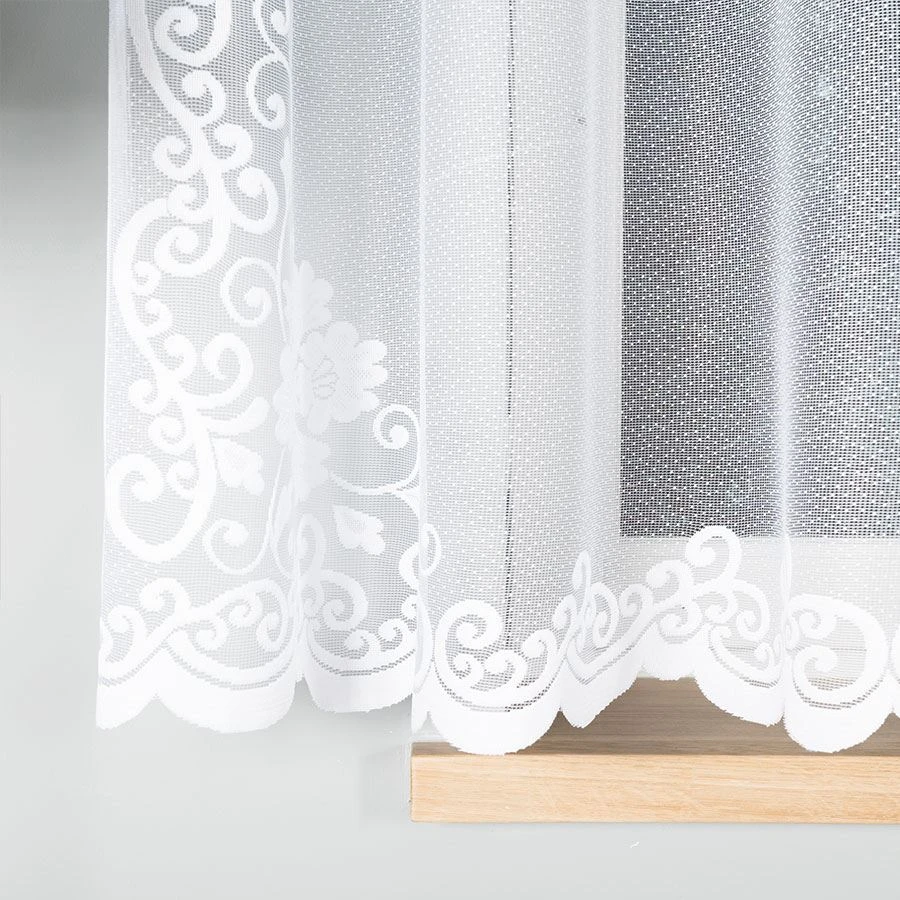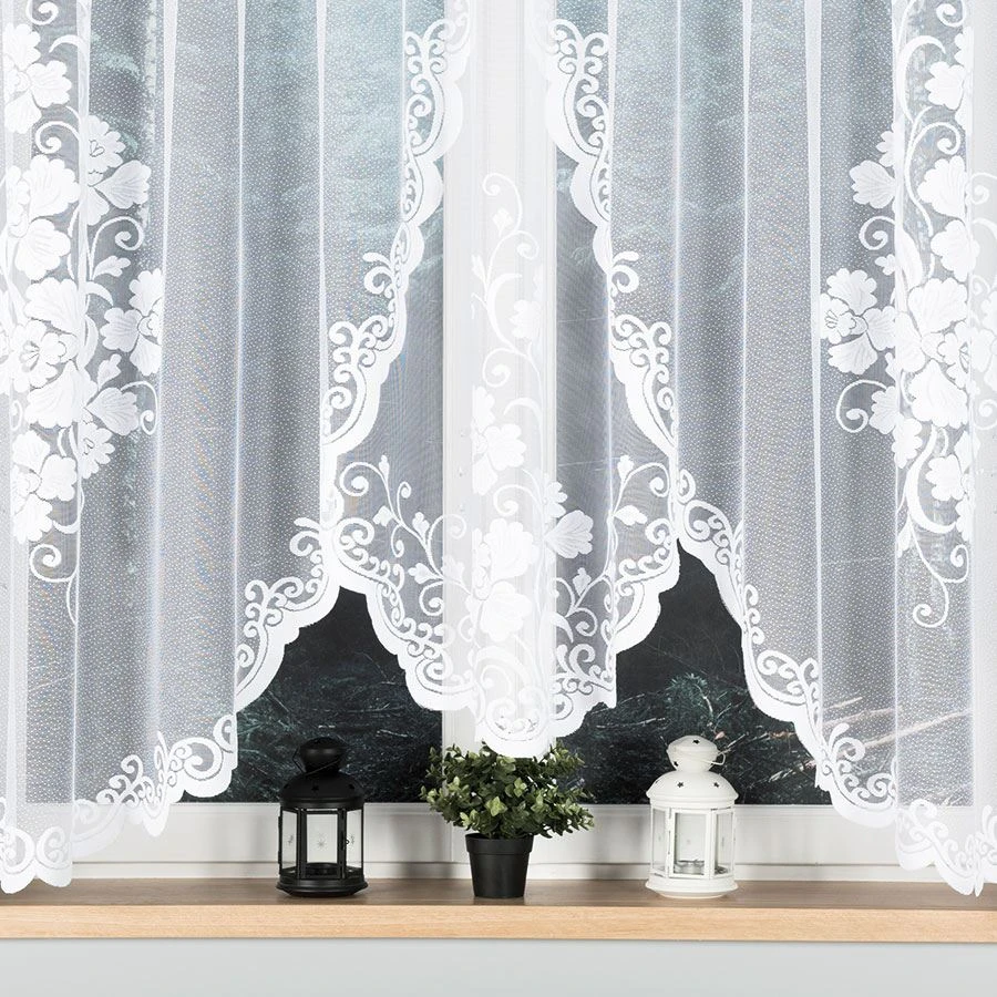 - Podcięcie na dole – subtelnie wyprofilowane wykończenie podkreśla lekkość firanki.