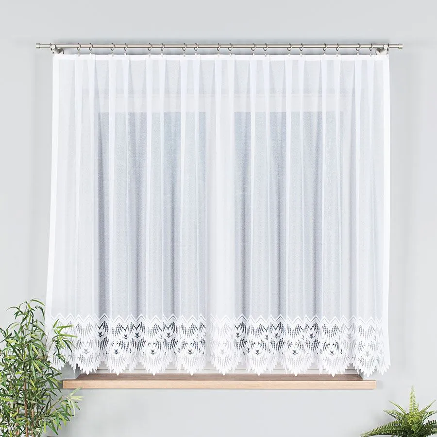 Gramatura:100g/m2Raport:10,5cmTyp/Rodzaj:żakardKolor:białySkład:100% Poliester