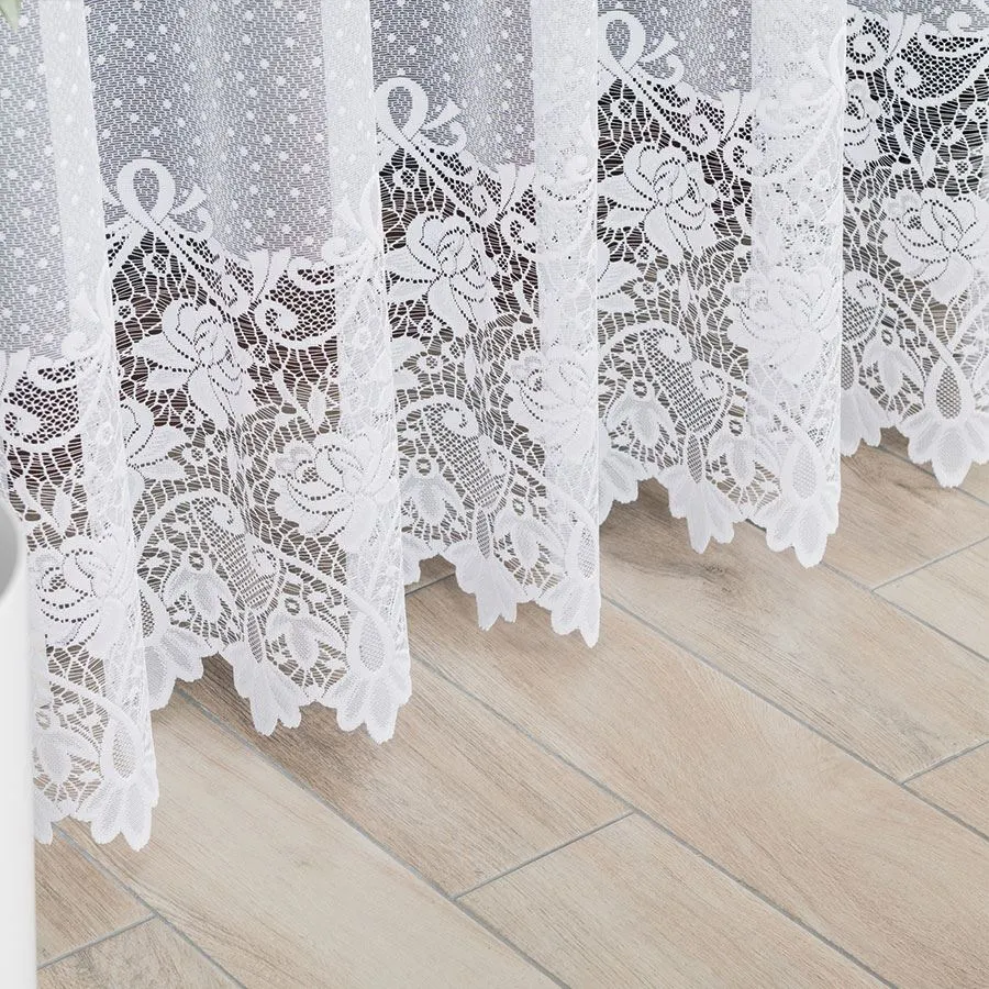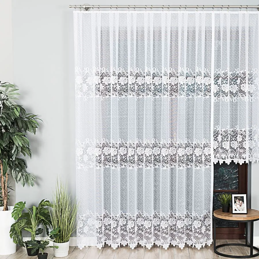 Pasowa firana żakardowa z motywem róży, która delikatnie osłoni twoje wnętrze, nie odbierając promieni słonecznych. Znakomicie się układa, przez co idealnie nadaje się do każdego pomieszczenia.Gramatura:101g/m2Raport:18cm