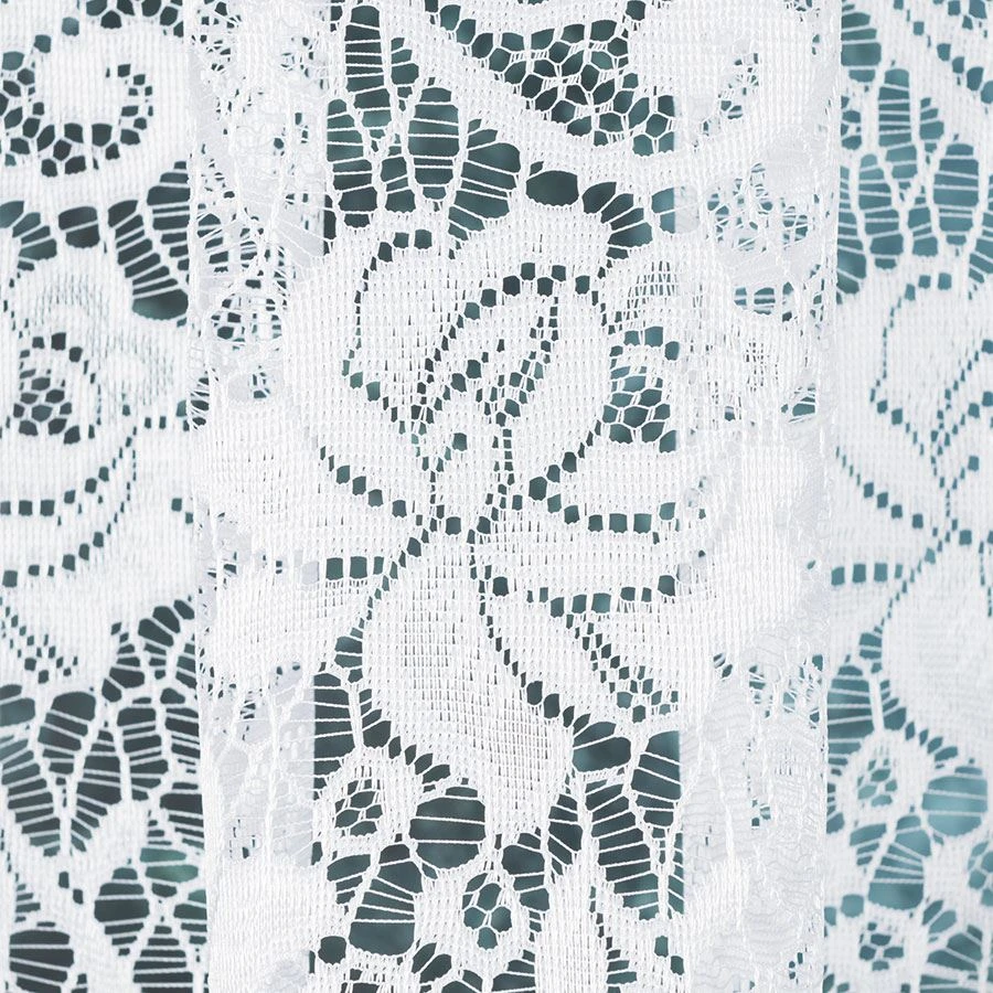 Rozmiar 400x160 cm dobrze prezentuje się na szerokich oknach w salonie, pokoju dziennym, sypialni czy jadalni. Biała, żakardowa tkanina z ornamentami subtelnie dekoruje przestrzeń i ładnie komponuje się z drewnem, jasnymi ścianami oraz klasycznymi dodatkami.