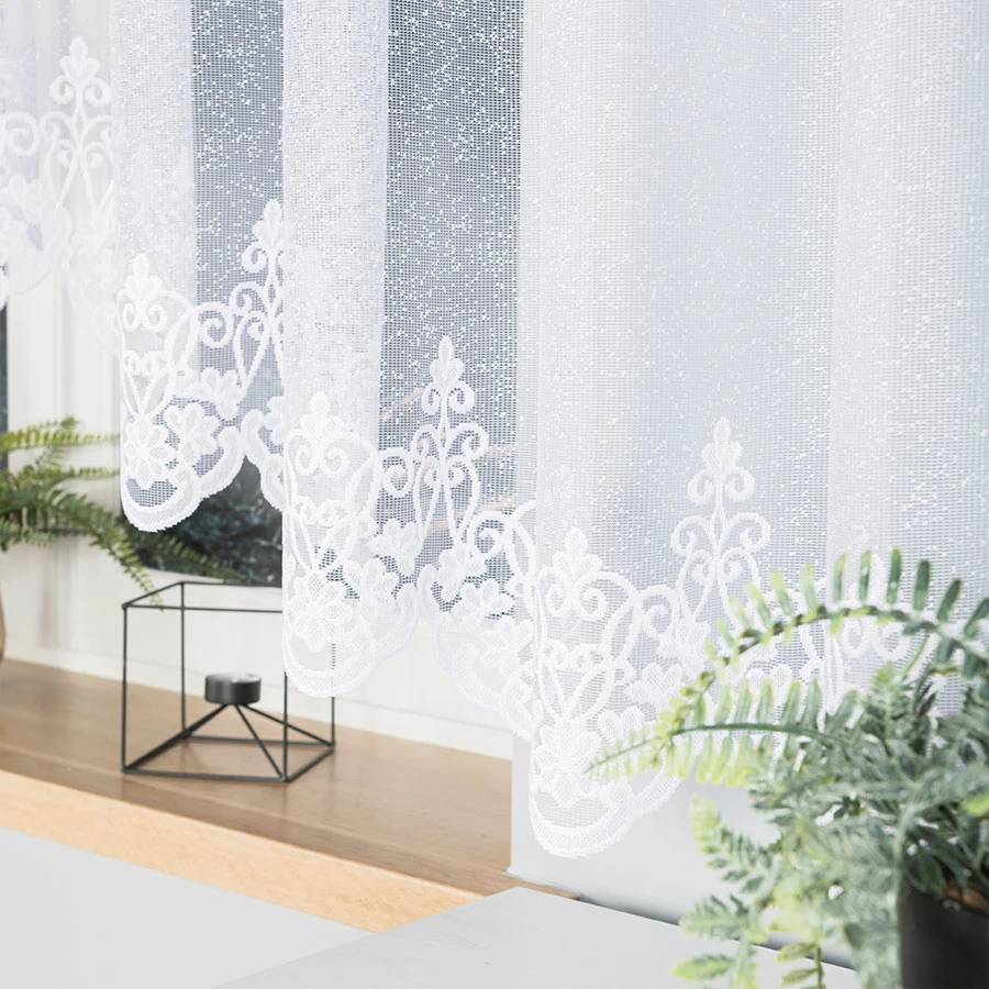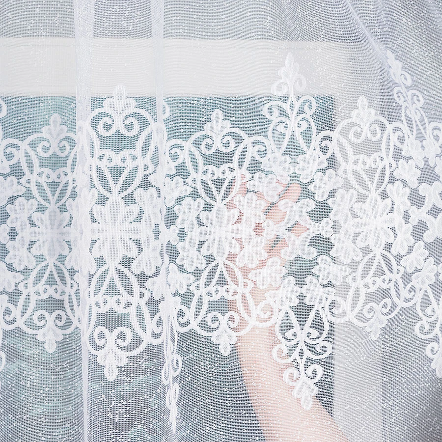 Potrzebujesz firanki, która efektownie ozdobi szerokie i wysokie okno? ŻANETA 450x175 cm to propozycja stworzona z myślą o dużych przestrzeniach i tych, którzy kochają klasyczne detale w lekkim wydaniu. ✨ Wykonana z delikatnego, białego żakardu, firanka zdobiona jest ażurowym, florystycznym wzorem, który pięknie komponuje się z promieniami światła. Dzięki temu wnętrze staje się bardziej jasne i przestronne, a jednocześnie przytulne. ☀️🌸 Dekoracyjne podcięcie u dołu tworzy elegancką falę, dodając całej kompozycji miękkości i klasy. Ten drobny, ale bardzo efektowny element sprawia, że ŻANETA prezentuje się wyjątkowo stylowo – zarówno na co dzień, jak i od święta. Firanka ma szerokość 450 cm, co pozwala uzyskać piękne marszczenie na karniszu o długości **225–300 cm** (zalecana proporcja od 1:2 do 1:1,5). Gotowa do zawieszenia na żabki – nie wymaga tunelu ani żadnych przeróbek. 🧷