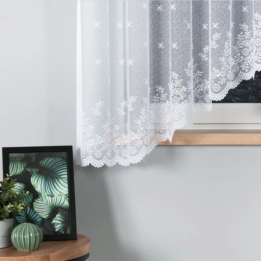 Wykonana z dzianiny żakardowej o gramaturze 80–90 g/m² i składzie 100% poliester, łączy estetykę z wygodą użytkowania. Fabryczne wykończenie boków nie wymaga obszycia, a dół wykończony laserowo wytapianą krawędzią podkreśla wzór i pomaga zachować schludny wygląd. To firana pojedyncza w stylu klasycznym, przygotowana do zawieszenia na żabki.