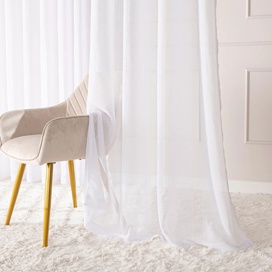 Odkryj firankę gotową 424118 z taśmą marszczącą o wymiarach 300x250 cm w klasycznym, białym kolorze. Jej subtelny, a zarazem wyrazisty wzór strukturalny sprawia, że tkanina prezentuje się niezwykle lekko i świeżo. To propozycja dla osób, które cenią sobie połączenie nowoczesnej elegancji z praktycznością na co dzień. Przepuszcza światło, a jednocześnie zapewnia komfortową prywatność – idealna do każdego wnętrza, które potrzebuje odrobiny przytulności i stylu. 🤍