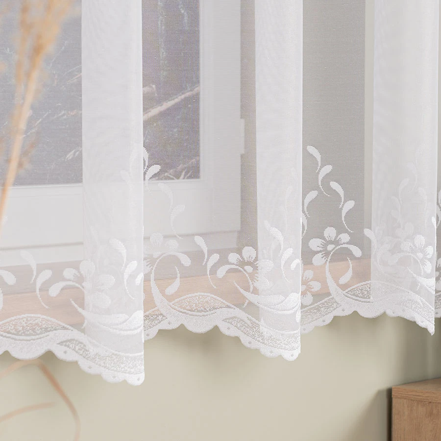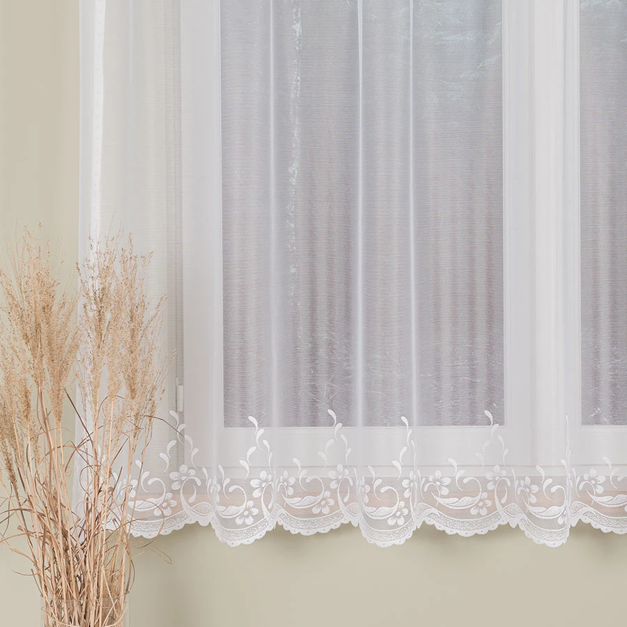 - 🧺 Bezproblemowa pielęgnacja – firankę można prać w pralce, nie wymaga prasowania, długo zachowuje śnieżną biel.