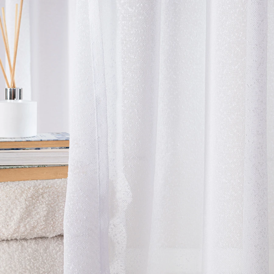 - 🧵 Ciekawy wzór z delikatnym połyskiem dodaje firance elegancji