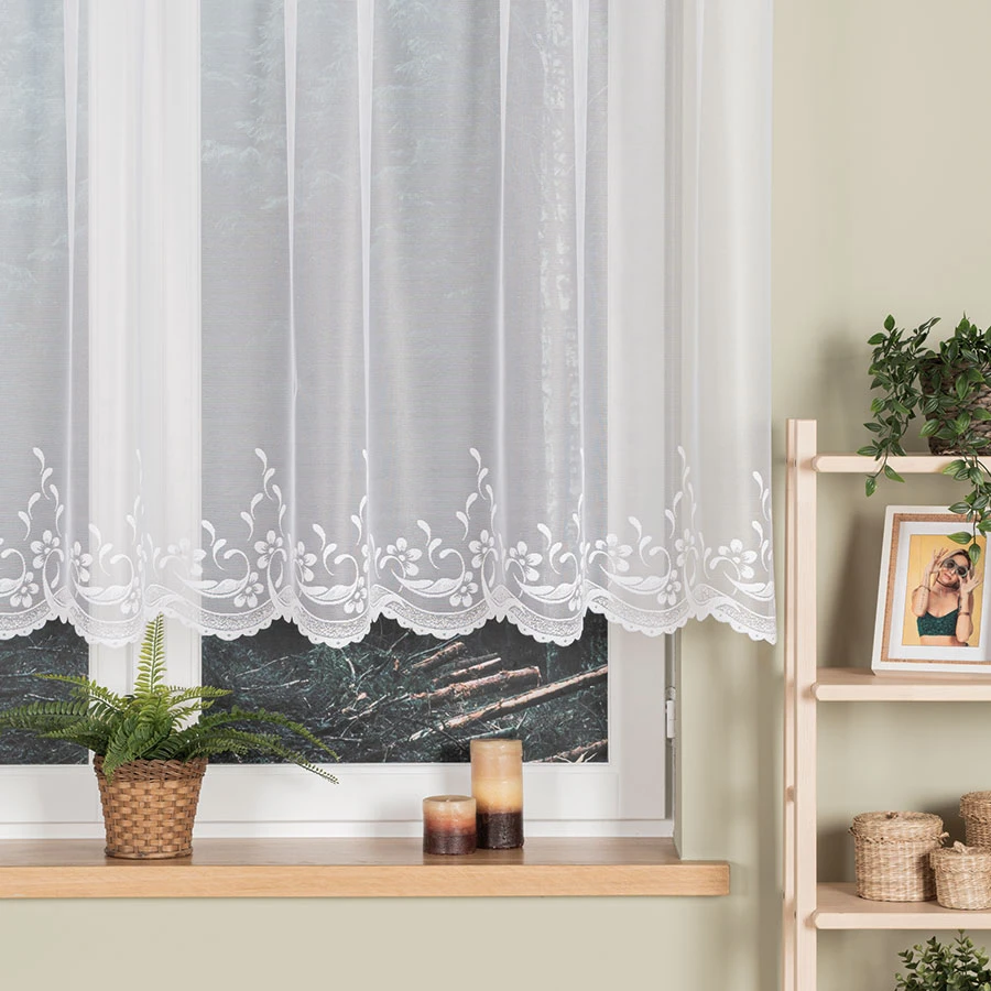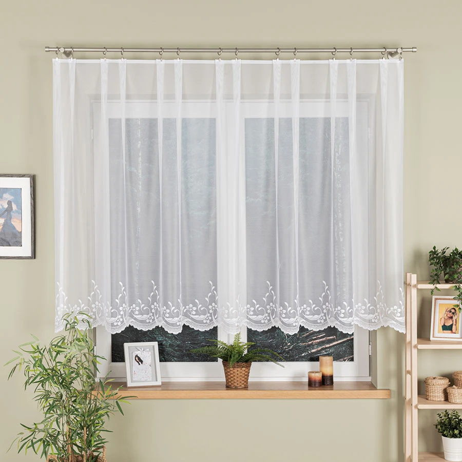 Model ten idealnie sprawdzi się w kuchni, jadalni lub pokoju dziennym – wszędzie tam, gdzie zależy Ci na lekkości, przejrzystości i tradycyjnej formie. Firanka zawieszana na żabki, co daje dużą swobodę w dopasowaniu do karnisza i stylu wnętrza. 🪟