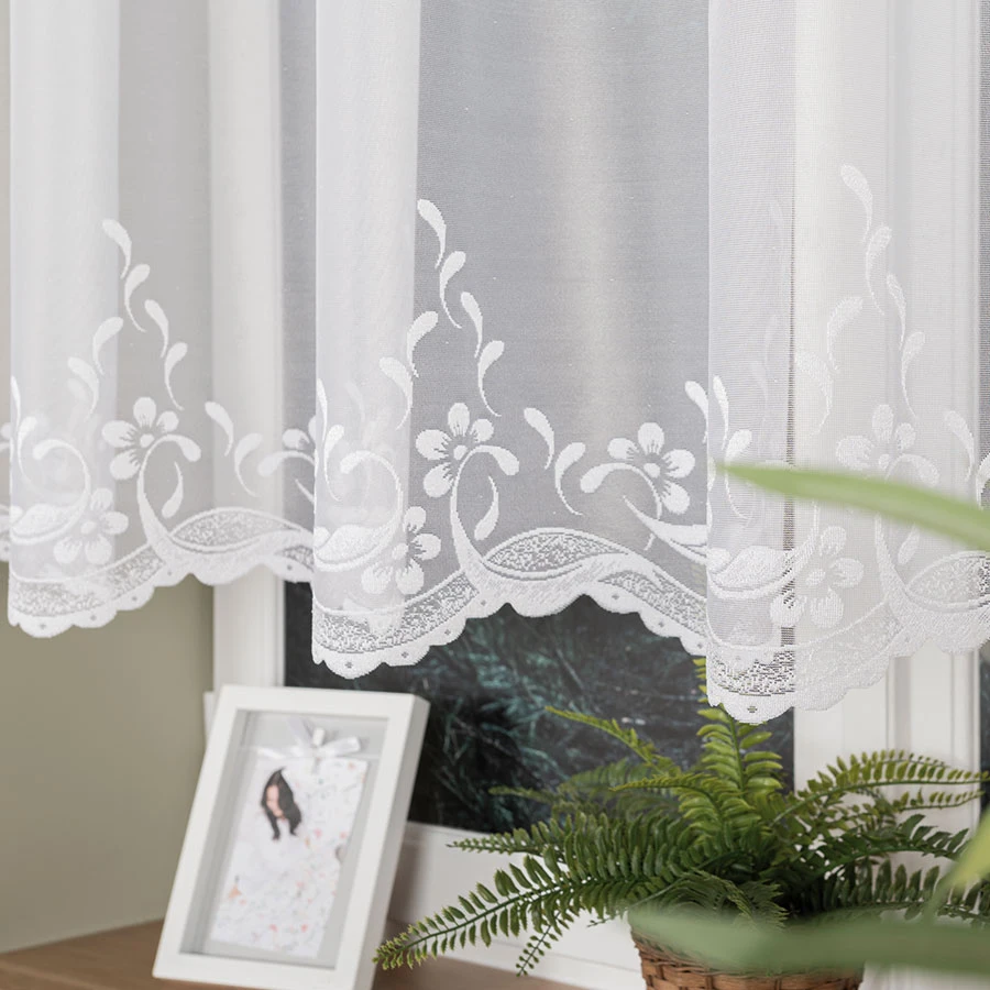 Firanka AGNIESZKA to klasyka w najlepszym wydaniu! Wykonana z białego żakardu, zdobiona została delikatnym, roślinnym wzorem oraz wykończona prostym, eleganckim dołem. Jej subtelna struktura nadaje oknu przytulności i dekoracyjnego uroku, jednocześnie nie zaciemniając wnętrza. 🌿