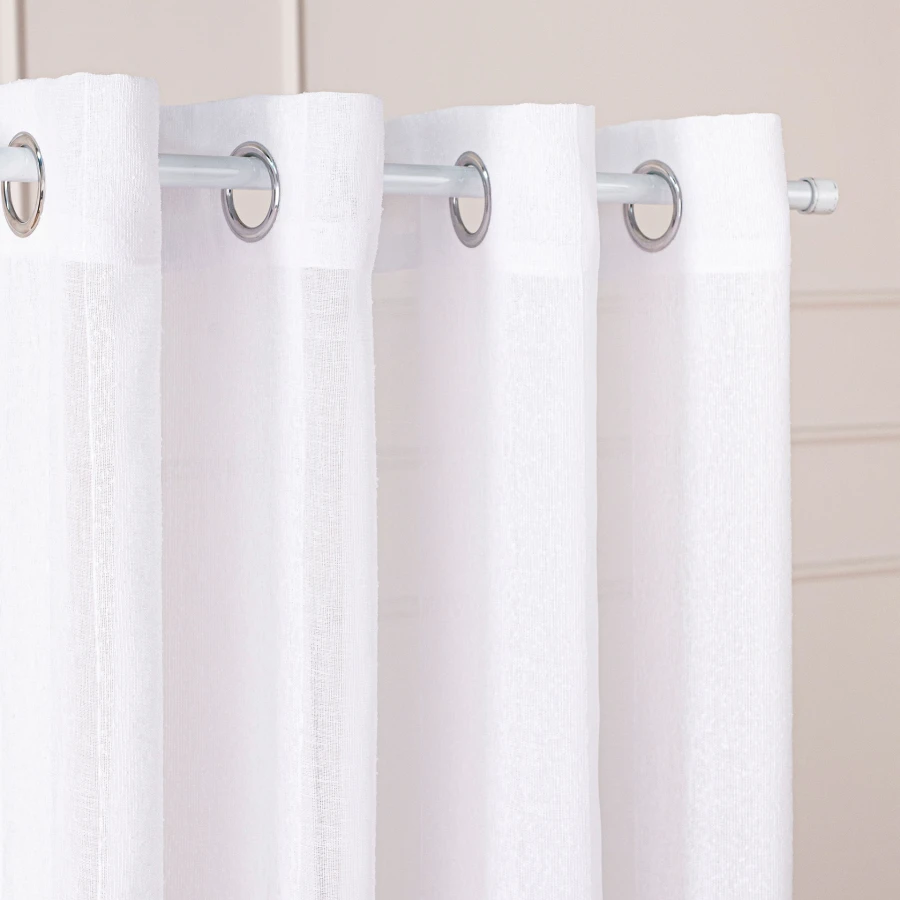 Firanka wykończona jest przelotkami, dzięki którym zawieszenie jej na karniszu zajmuje tylko chwilę. Materiał układa się w naturalne, równe fale, prezentując się schludnie i nowocześnie. 🪟