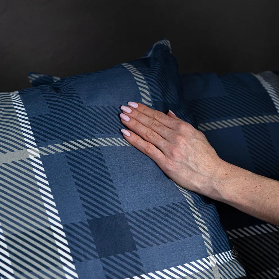 Stwórz wyjątkową atmosferę w swojej sypialni z pościelą KADENA! Granatowa baza z białą, subtelną kratką to połączenie ponadczasowej klasyki z nowoczesnym stylem. Ten wzór wprowadza spokój i harmonię, doskonale komponując się z aranżacjami w stylu klasycznym, nowoczesnym, a nawet loftowym.