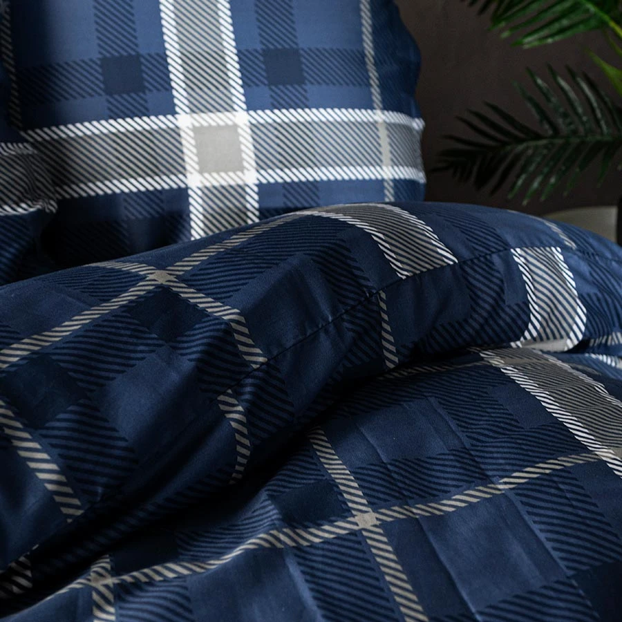 Pościel KADENA łączy w sobie klasykę i nowoczesność. Głęboki granat zestawiony z białym wzorem w kratę tworzy wyrafinowaną, a zarazem przytulną kompozycję. Idealna do sypialni w stylu klasycznym, nowoczesnym czy industrialnym – nadaje im szyku i elegancji.