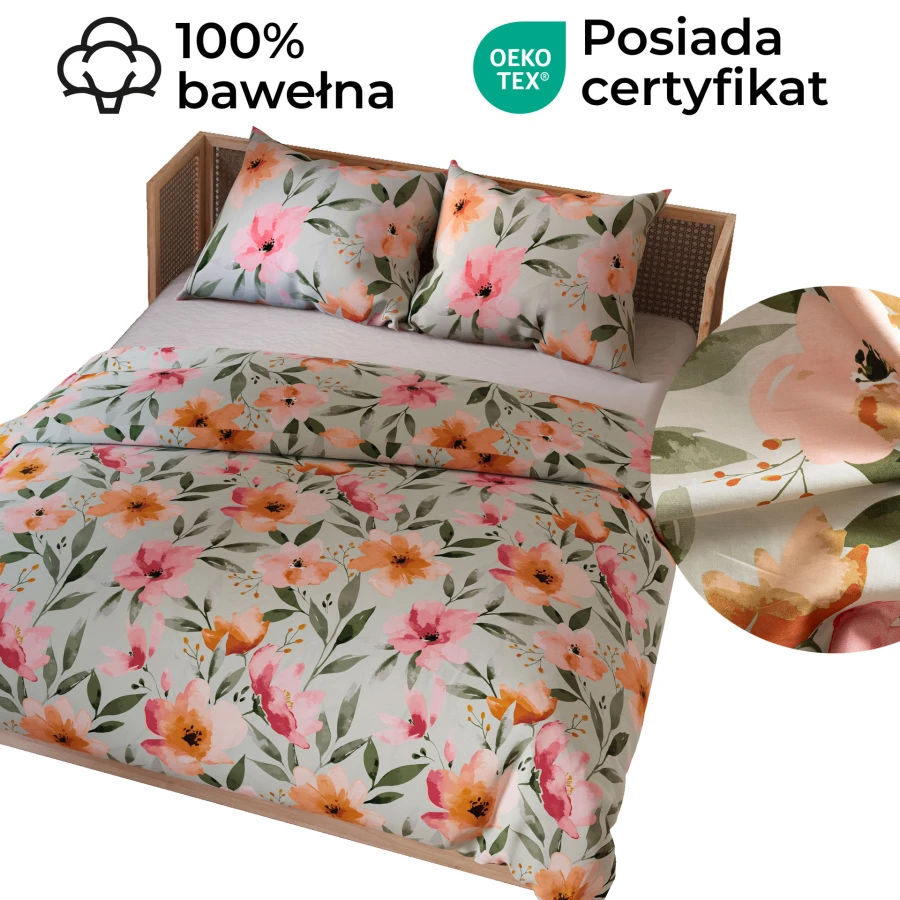 Pościel NITTA 220x200 cm Wykonana z wysokogatunkowej bawełny satynowej o gramaturze 115 GSM. Tkanina o splocie satynowym jest bardzo miła w dotyku oraz przyjemna dla skóry Komplet pościeli składa się z jednej poszwy 220x200 cm oraz dwóch poszewek 70x80 cm. Pościel pakowana po 10 szt. w kartonie.