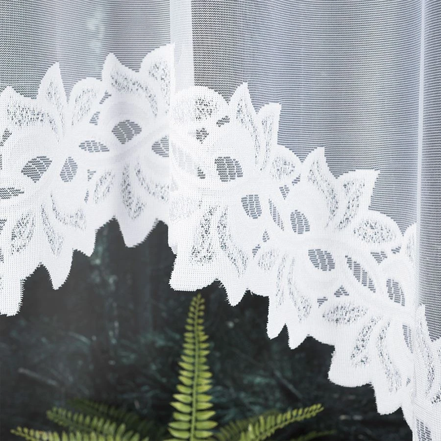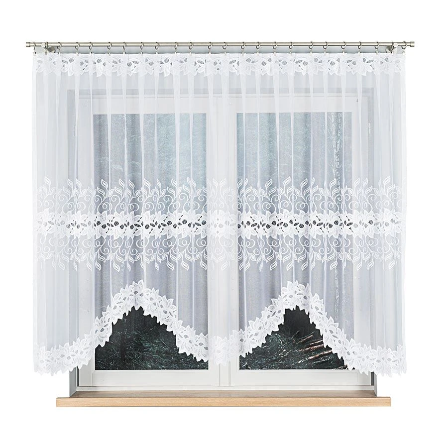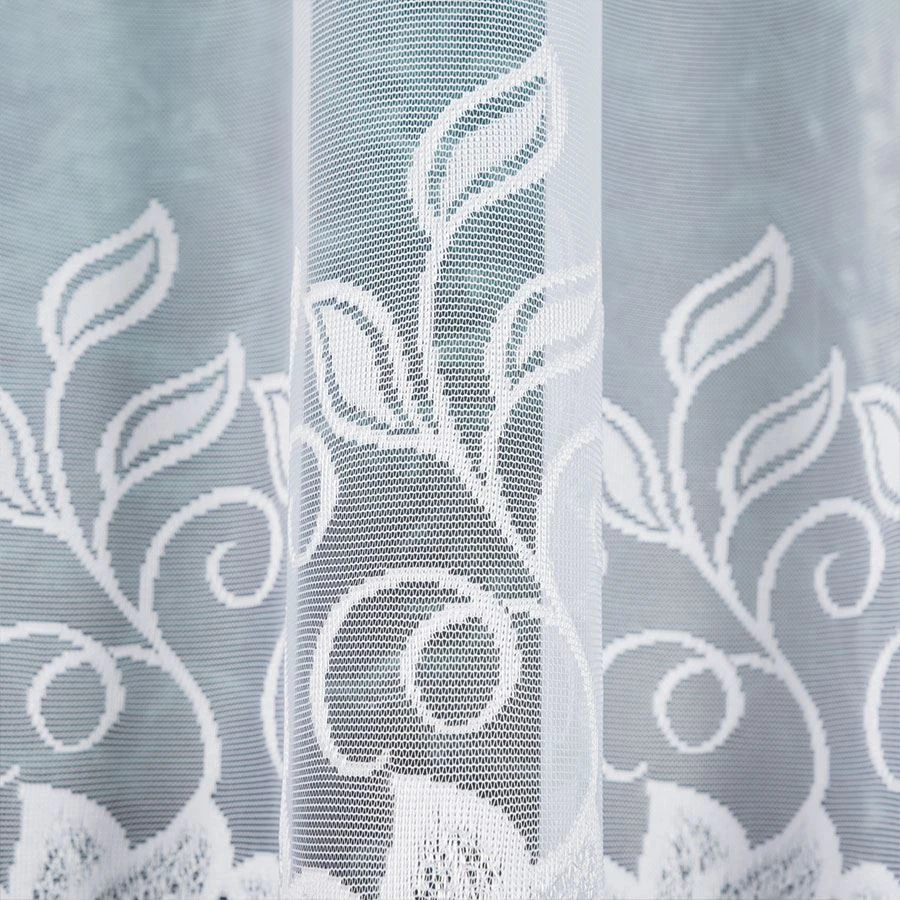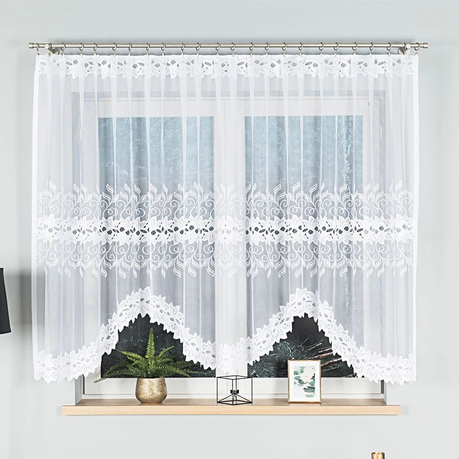 Odmień swoje wnętrze i wprowadź do niego lekkość oraz świeżość dzięki firance BASTIA! To wyjątkowa propozycja dla wszystkich, którzy szukają elegancji i subtelnej dekoracji okna. Gotowa żakardowa firanka o szerokości 300 cm i wysokości 150 cm została ozdobiona wyrazistym, białym wzorem liści, który harmonijnie komponuje się z każdym stylem aranżacji. Efektowne podcięcie na dole wykończone wyrafinowaną ażurową gipiurą sprawia, że BASTIA to produkt wyróżniający się na tle klasycznych firan. Przejrzysta, biała tkanina pięknie rozprasza światło i subtelnie chroni prywatność domowników. Twoja kuchnia, jadalnia czy salon zyskają nowy, przytulny charakter! 🌿🤍