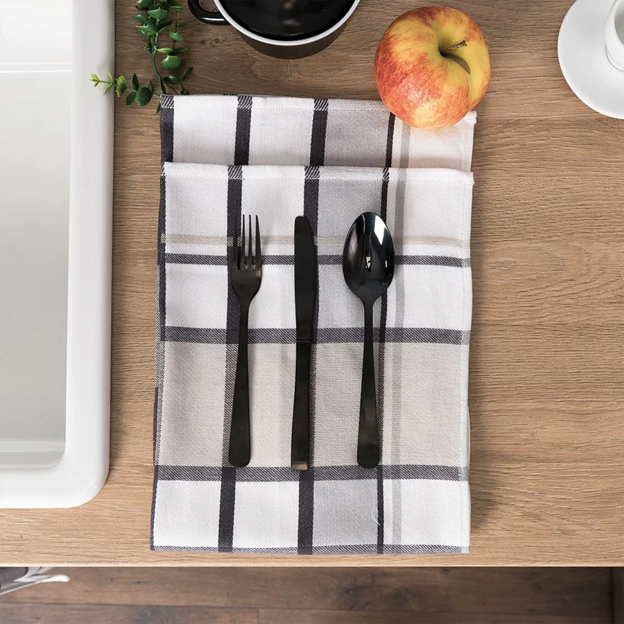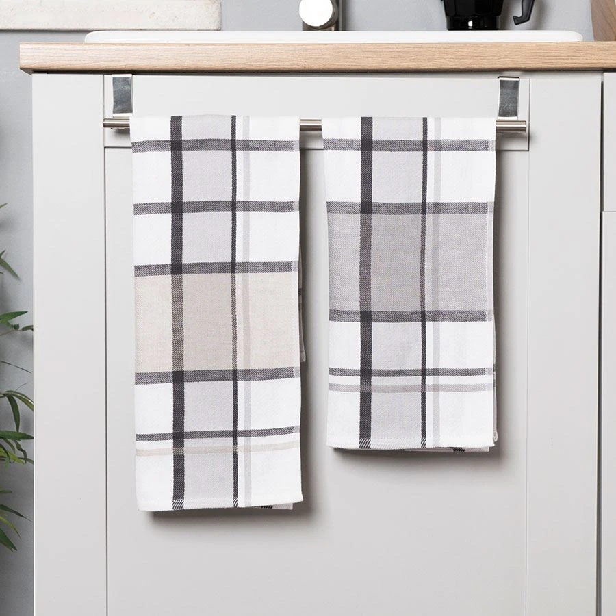- 🎨 Uniwersalny wzór – kratka w odcieniach szarości i beżu pasuje do każdego stylu kuchni i nie wychodzi z mody.