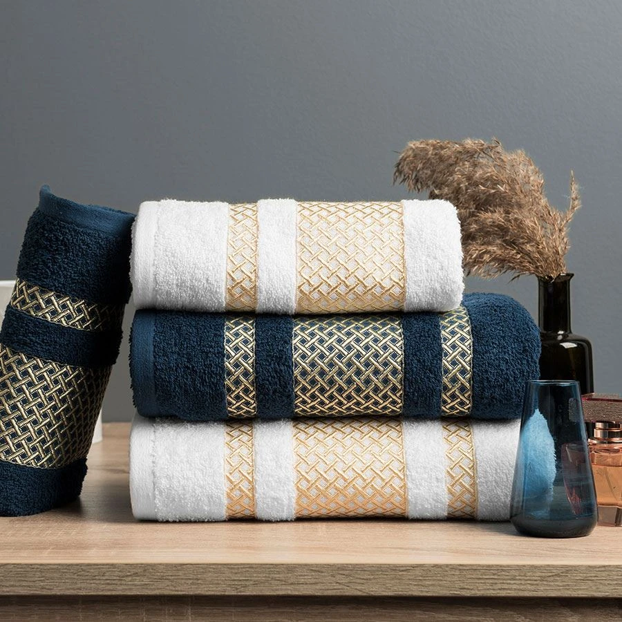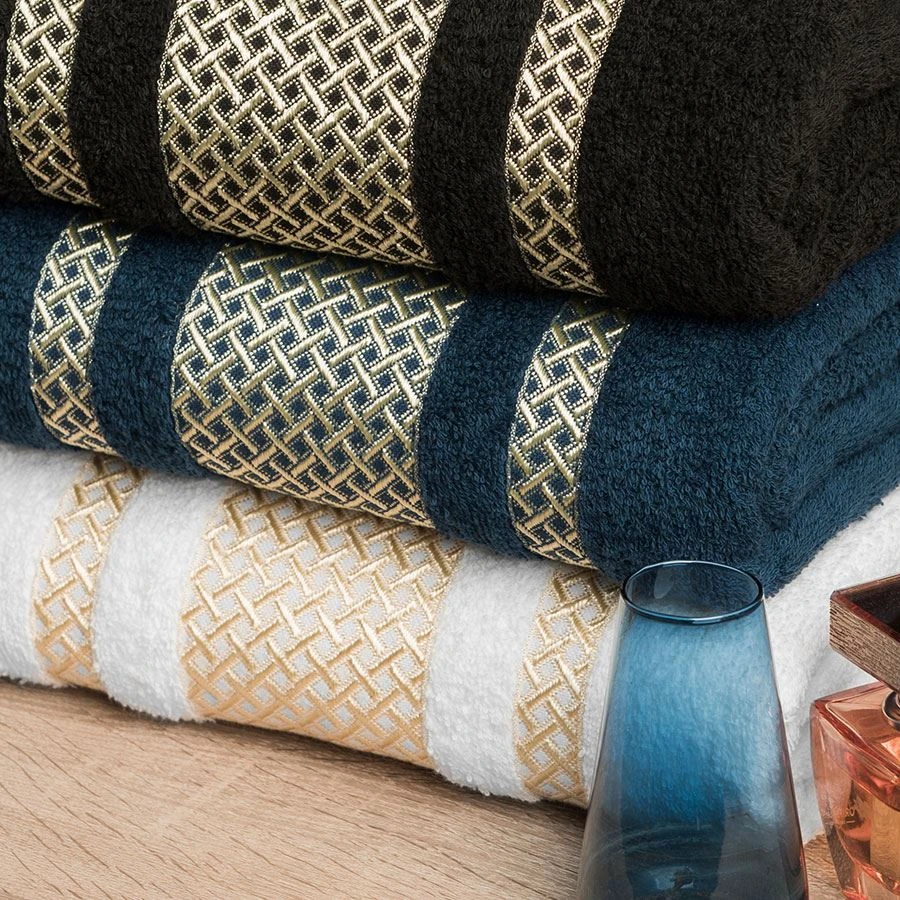 Ręcznik LIONEL 50x90 cm Skład: 96% bawełna, 4% poliester(element ozdobny)Gramatura:450 g/m2PRZEPIS PRANIA:Wyprać przed pierwszym użyciemMaksymalna temperatura prania 60°CNie stosować bielenia / bez bieleniaNie suszyć w suszarce bębnowejPrasowanie w maksymalnej temperaturze dolnej płyty 150°CNie czyścić chemicznie
