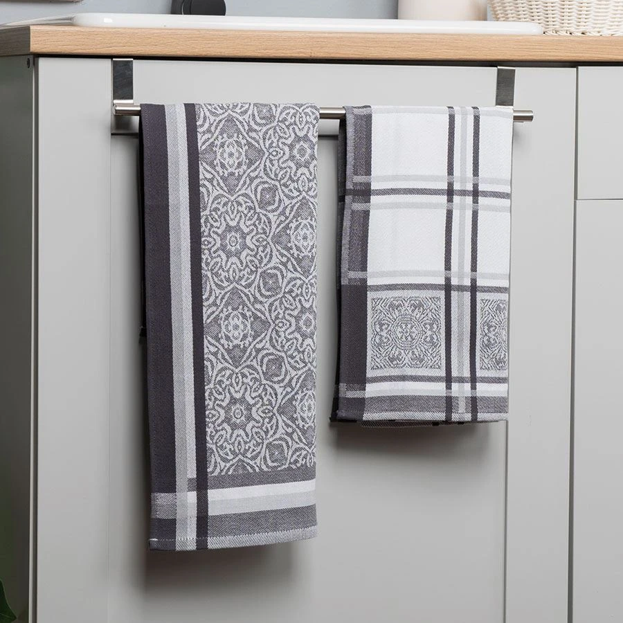 Odkryj stylową funkcjonalność w swojej kuchni ze ścierką DOLCE o wymiarach 50x70 cm! Ta starannie wykończona, szara ścierka zachwyca efektownym żakardowym wzorem inspirowanym klasycznymi ornamentami, który wprowadza do wnętrza nutę wyrafinowania. Wykonana w 100% z miękkiej bawełny egipskiej, jest nie tylko estetyczna, ale przede wszystkim praktyczna – doskonale chłonie wilgoć, jest przyjemna w dotyku i pozostaje odporna na wielokrotne pranie. Pozwól sobie na odrobinę codziennego luksusu, który ułatwia i uprzyjemnia codzienne czynności kuchenne! 🤍