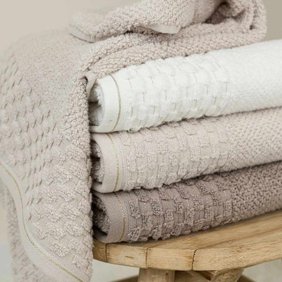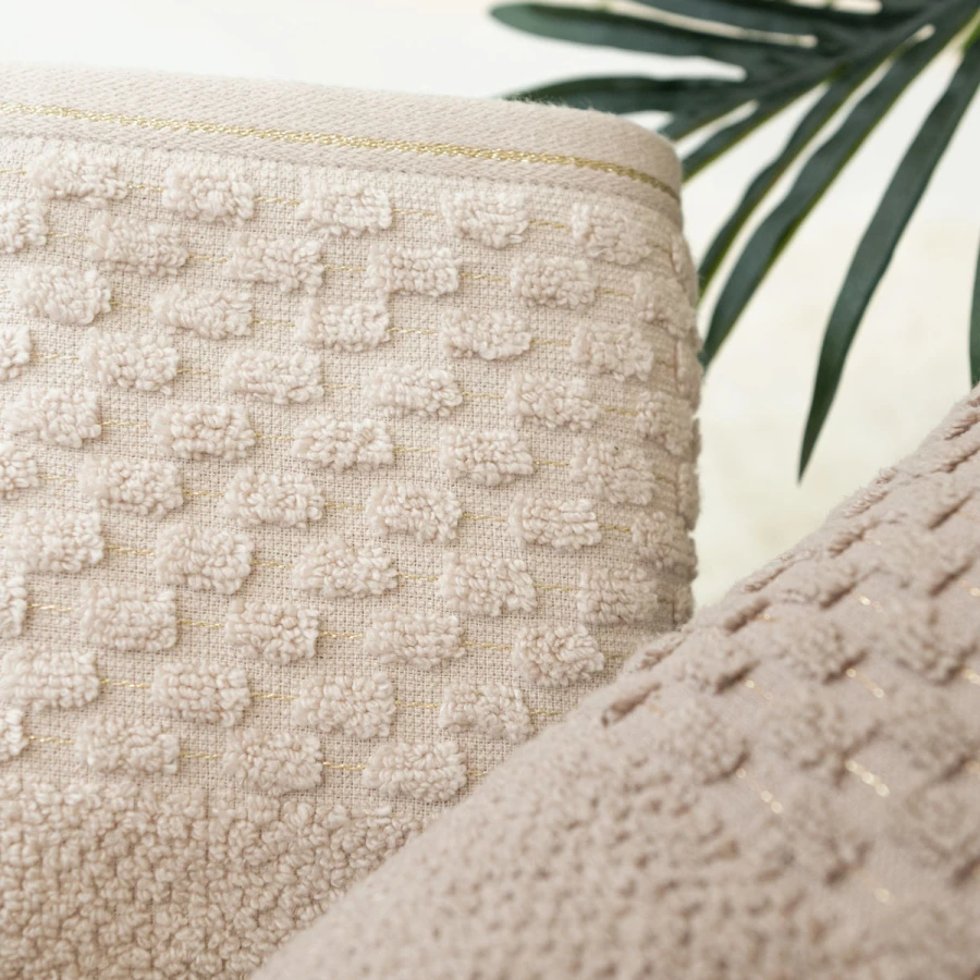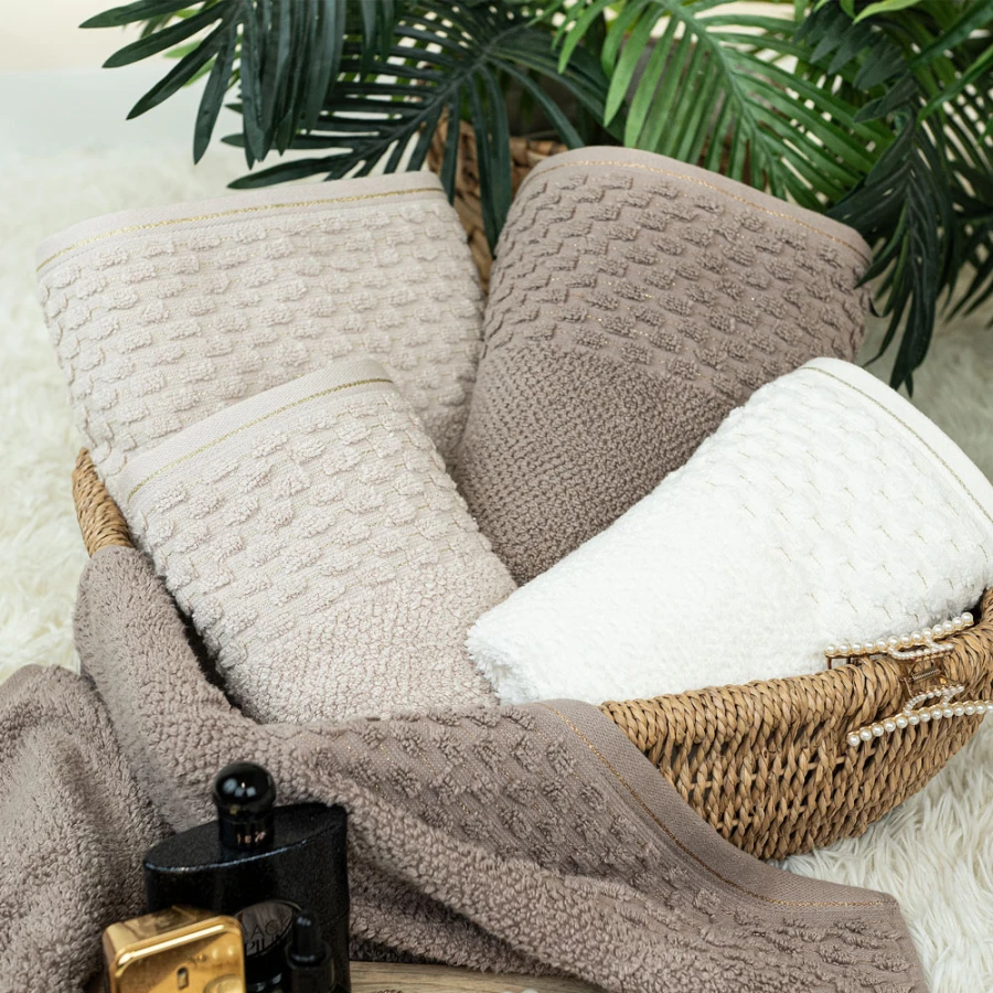 Ręcznik NEPTUN 50x90 cm, kolor 011 kremowy Wyjątkowy ręcznik ze złotym wykończeniem, będzie ozdobą każdej łazienki. Dzięki swojej optymalnej gramaturze na poziome 500g/m2 doskonale spełni swoją funkcję i z łatwością wchłonie wodę. Skład: 96% bawełna 4% poliester (ozdobna nitka) Gramatura:500 g/m2PRZEPIS PRANIA:Wyprać przed pierwszym użyciemMaksymalna temperatura prania 40°CNie stosować bielenia / bez bieleniaNie suszyć w suszarce bębnowejNie czyścić chemicznie