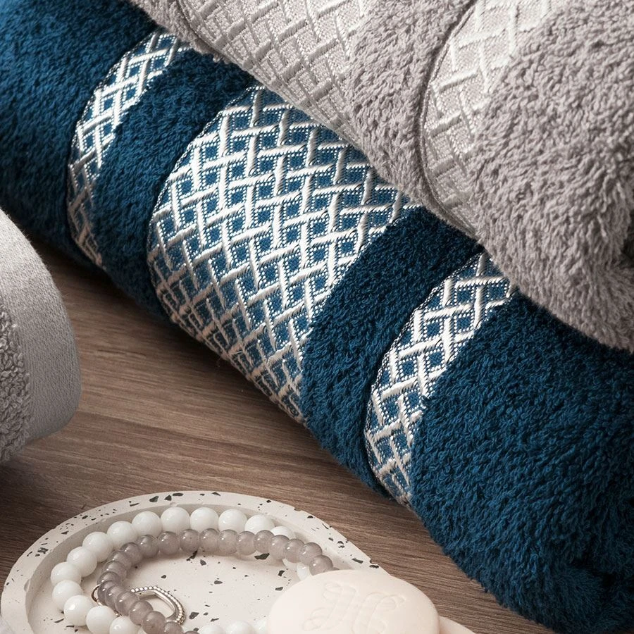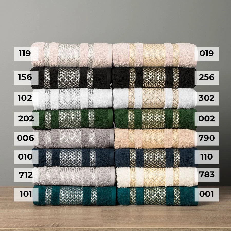 Ręcznik LIONEL 50x90 cm Skład: 96% bawełna, 4% poliester(element ozdobny)Gramatura:450 g/m2PRZEPIS PRANIA:Wyprać przed pierwszym użyciemMaksymalna temperatura prania 60°CNie stosować bielenia / bez bieleniaNie suszyć w suszarce bębnowejPrasowanie w maksymalnej temperaturze dolnej płyty 150°CNie czyścić chemicznie