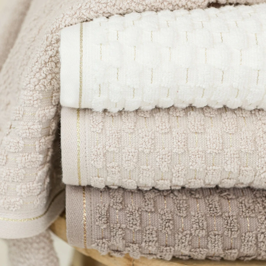 Ręcznik NEPTUN 50x90 cm, kolor 001 biały Wyjątkowy ręcznik ze złotym wykończeniem, będzie ozdobą każdej łazienki. Dzięki swojej optymalnej gramaturze na poziome 500g/m2 doskonale spełni swoją funkcję i z łatwością wchłonie wodę. Skład: 96% bawełna 4% poliester (ozdobna nitka) Gramatura:500 g/m2PRZEPIS PRANIA:Wyprać przed pierwszym użyciemMaksymalna temperatura prania 40°CNie stosować bielenia / bez bieleniaNie suszyć w suszarce bębnowejNie czyścić chemicznie