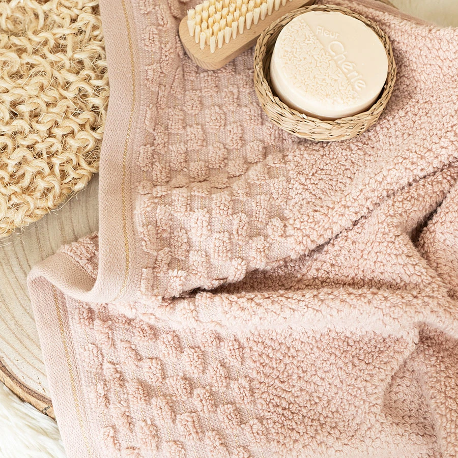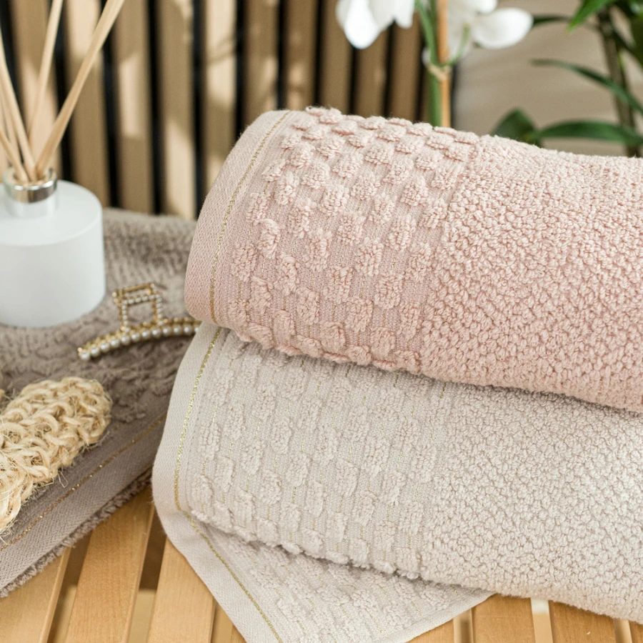 Ręcznik NEPTUN 70x140 cm, kolor 006 różowy Wyjątkowy ręcznik ze złotym wykończeniem, będzie ozdobą każdej łazienki. Dzięki swojej optymalnej gramaturze na poziome 500g/m2 doskonale spełni swoją funkcję i z łatwością wchłonie wodę. Skład: 96% bawełna 4% poliester (ozdobna nitka) Gramatura:500 g/m2PRZEPIS PRANIA:Wyprać przed pierwszym użyciemMaksymalna temperatura prania 40°CNie stosować bielenia / bez bieleniaNie suszyć w suszarce bębnowejNie czyścić chemicznie