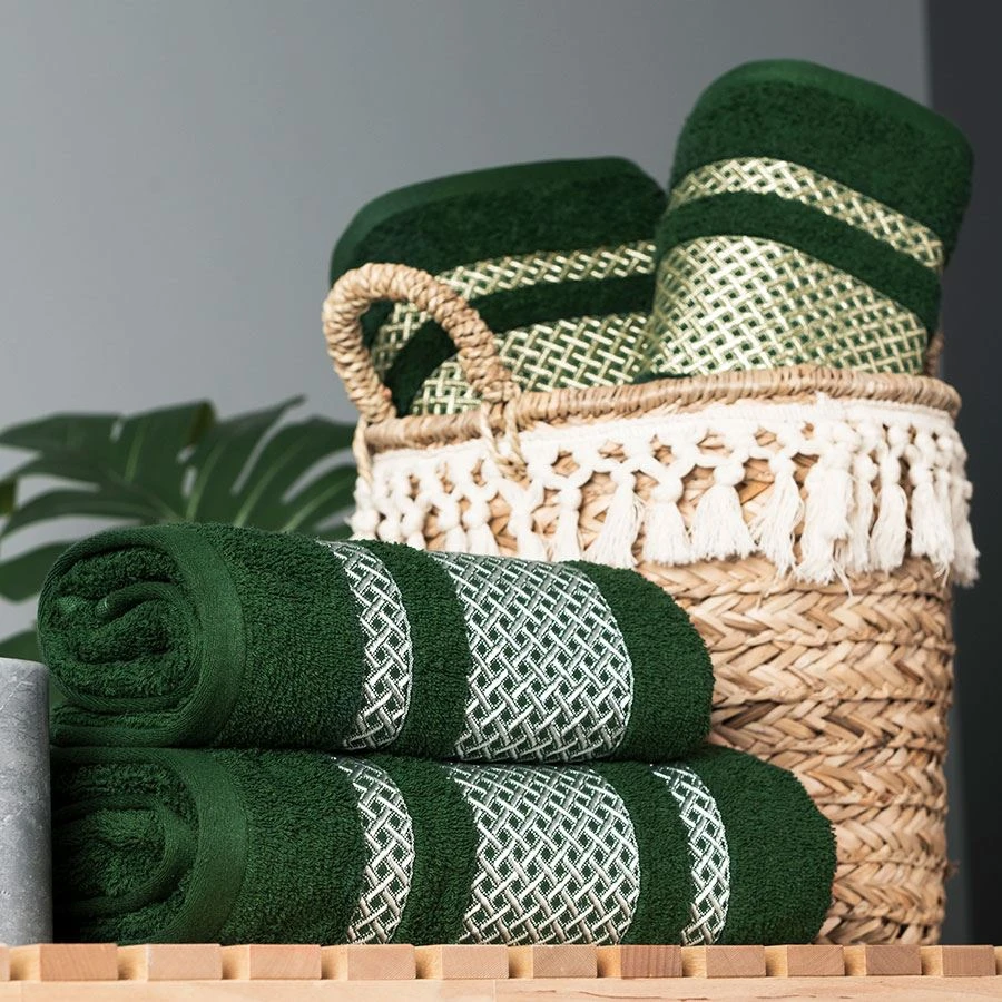 Ręcznik LIONEL 50x90 cm Skład: 96% bawełna, 4% poliester(element ozdobny)Gramatura:450 g/m2PRZEPIS PRANIA:Wyprać przed pierwszym użyciemMaksymalna temperatura prania 60°CNie stosować bielenia / bez bieleniaNie suszyć w suszarce bębnowejPrasowanie w maksymalnej temperaturze dolnej płyty 150°CNie czyścić chemicznie