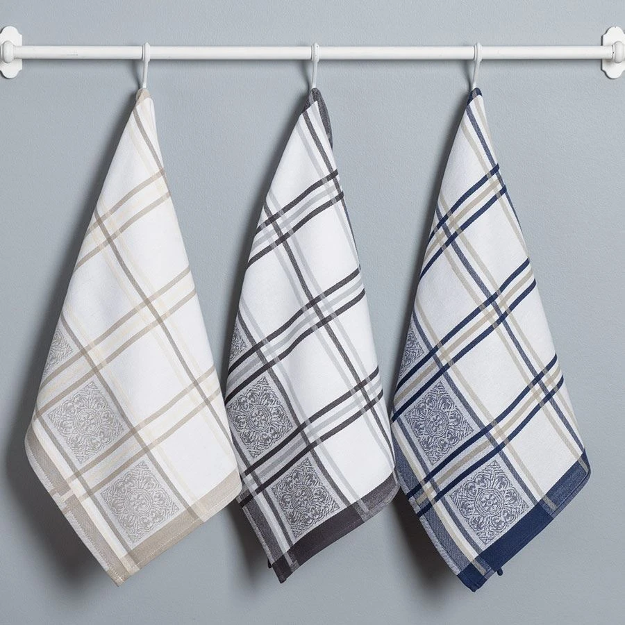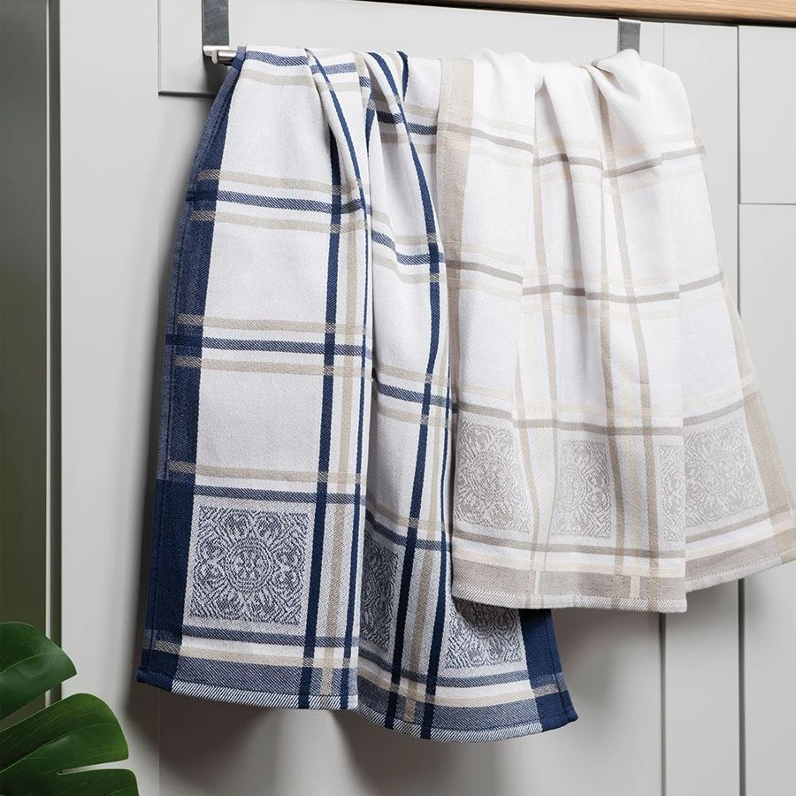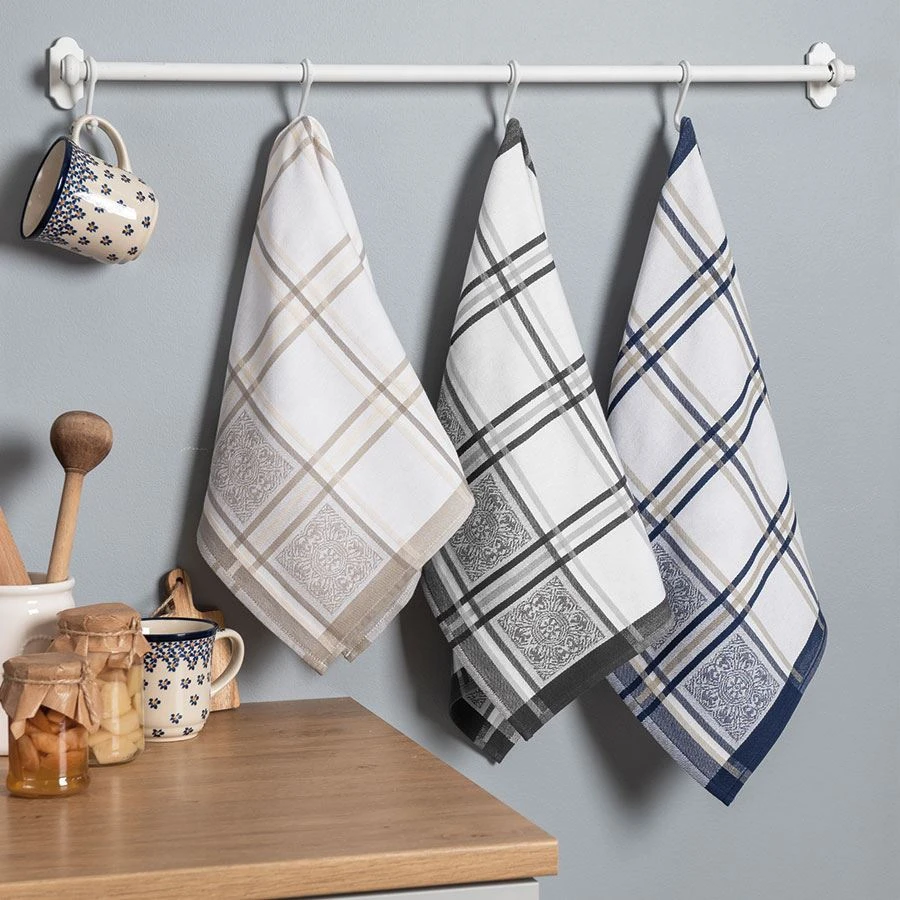 Granatowa ścierka kuchenna MAJOLICA to propozycja dla osób, które cenią nie tylko funkcjonalność, ale także elegancki wygląd akcesoriów kuchennych. Głęboki odcień granatu doskonale sprawdzi się zarówno w minimalistycznych aranżacjach, jak i w klasycznych wnętrzach, dodając im charakteru i stylu. Wykonana w 100% z egipskiej bawełny o gramaturze 200 g/m², gwarantuje wyjątkową chłonność oraz trwałość. Jej praktyczny rozmiar 50×70 cm sprawia, że jest wygodna do codziennego użytkowania, a dzięki jakości materiału szybko schnie i nie traci kształtu po praniu. Ścierka w granatowym kolorze to także praktyczny wybór – ciemny odcień skutecznie maskuje drobne zabrudzenia, dzięki czemu zawsze wygląda estetycznie. Klasyczny wzór w kratkę z ornamentami nadaje jej ponadczasowego charakteru, przez co może być nie tylko praktycznym dodatkiem, ale również elementem dekoracyjnym Twojej kuchni.