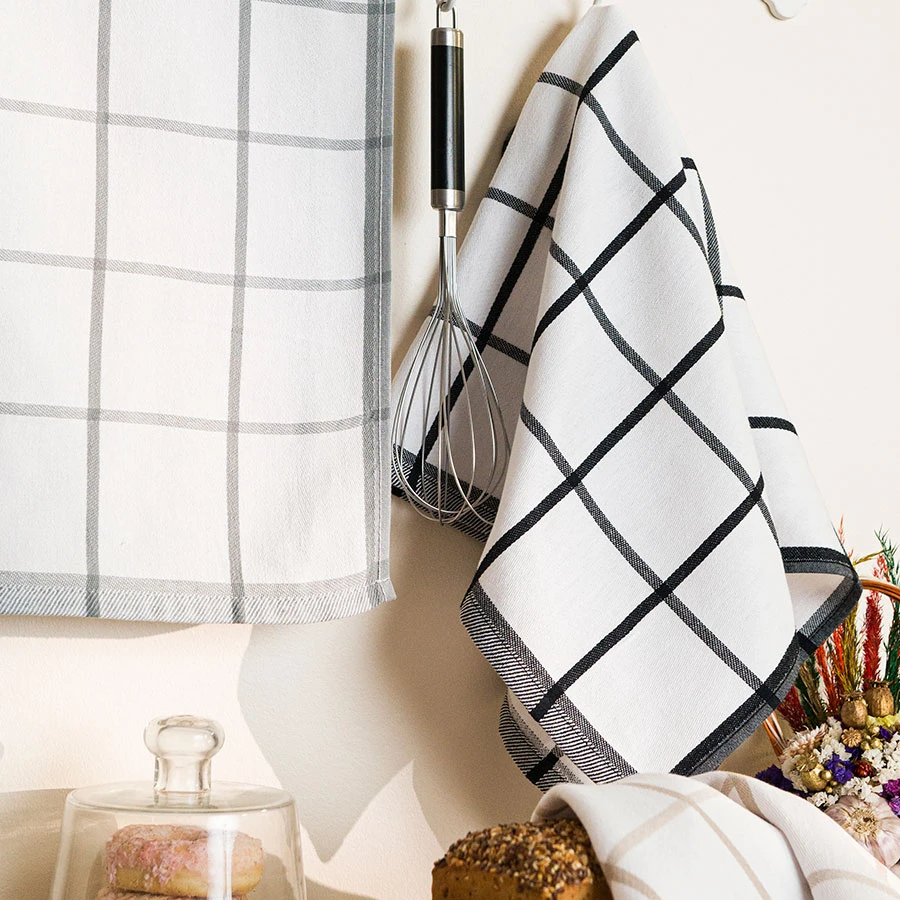 Czarna ścierka kuchenna KRATKA to doskonały wybór dla osób, które cenią sobie zarówno funkcjonalność, jak i styl. Wykonana w 100% z wysokiej jakości bawełny, zachwyca miękkością oraz dużą chłonnością. Klasyczny wzór w kratę w czarnym kolorze wprowadza do kuchni elegancję i nowoczesny charakter, a jednocześnie świetnie radzi sobie z maskowaniem drobnych zabrudzeń. Dzięki solidnemu wykonaniu i trwałości, sprawdzi się doskonale w codziennym użytkowaniu, ułatwiając wycieranie naczyń, blatów i rąk. To ścierka, która łączy piękno z praktycznością – niezbędna w każdej kuchni! 🖤✨