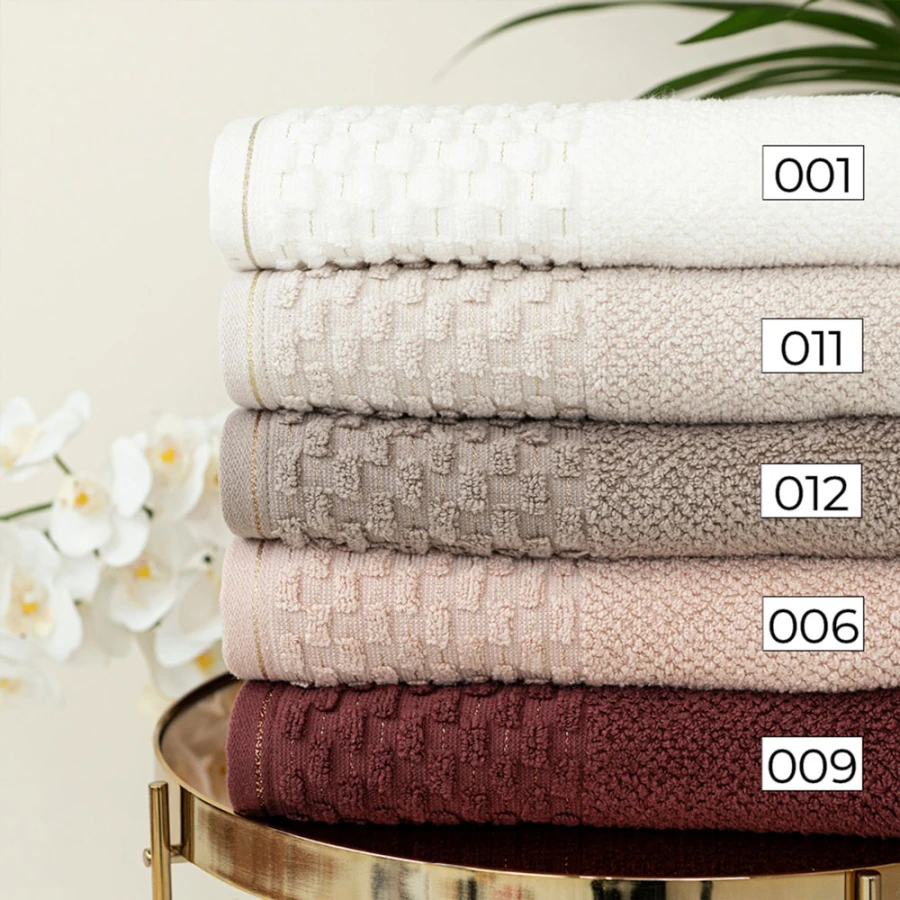 Ręcznik NEPTUN 70x140 cm, kolor 009 ciemno czerwony; burgundowy Wyjątkowy ręcznik ze złotym wykończeniem, będzie ozdobą każdej łazienki. Dzięki swojej optymalnej gramaturze na poziome 500g/m2 doskonale spełni swoją funkcję i z łatwością wchłonie wodę. Skład: 96% bawełna 4% poliester (ozdobna nitka) Gramatura:500 g/m2PRZEPIS PRANIA:Wyprać przed pierwszym użyciemMaksymalna temperatura prania 40°CNie stosować bielenia / bez bieleniaNie suszyć w suszarce bębnowejNie czyścić chemicznie