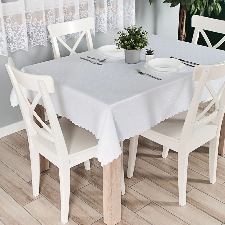 Obrus wodoodporny,brzegi wytopione ozdobną chmurką Gramatura:180g/m2 Skład:100% Poliester