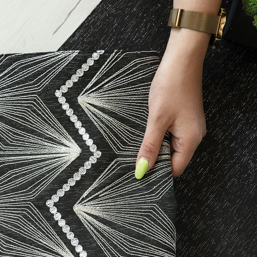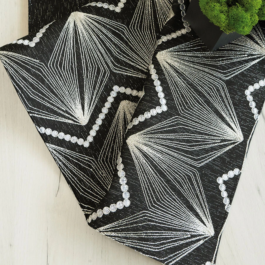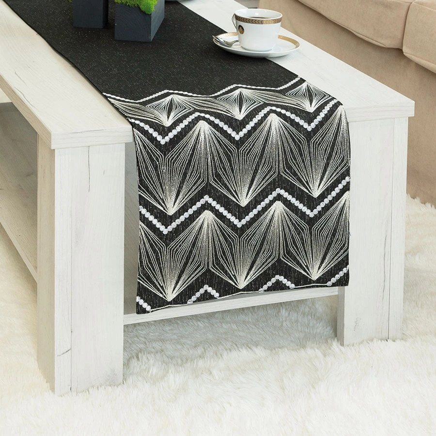 Elegancki i praktyczny bieżnik wykonany z wysokiej jakości tkaniny poliestrowej.Bieżnik ozdobiony błyszczącą nitką.Wykończony na brzegach wąską listwą. Rozmiar:35x180 cm Gramatura: 200gsm Skład: 100% Poliester