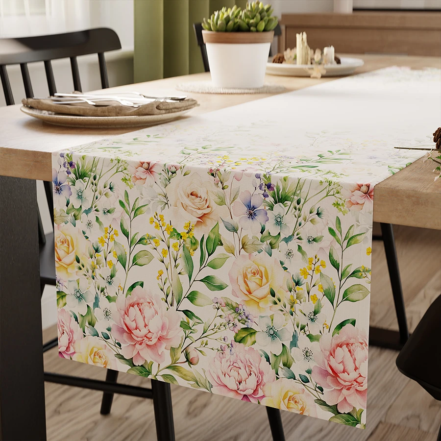 Bieżnik wodoodporny na podkładzie NINA WODOODPORNAWykończono listwą. Rozmiar: 38x160cm WYPRODUKOWANO W POLSCE