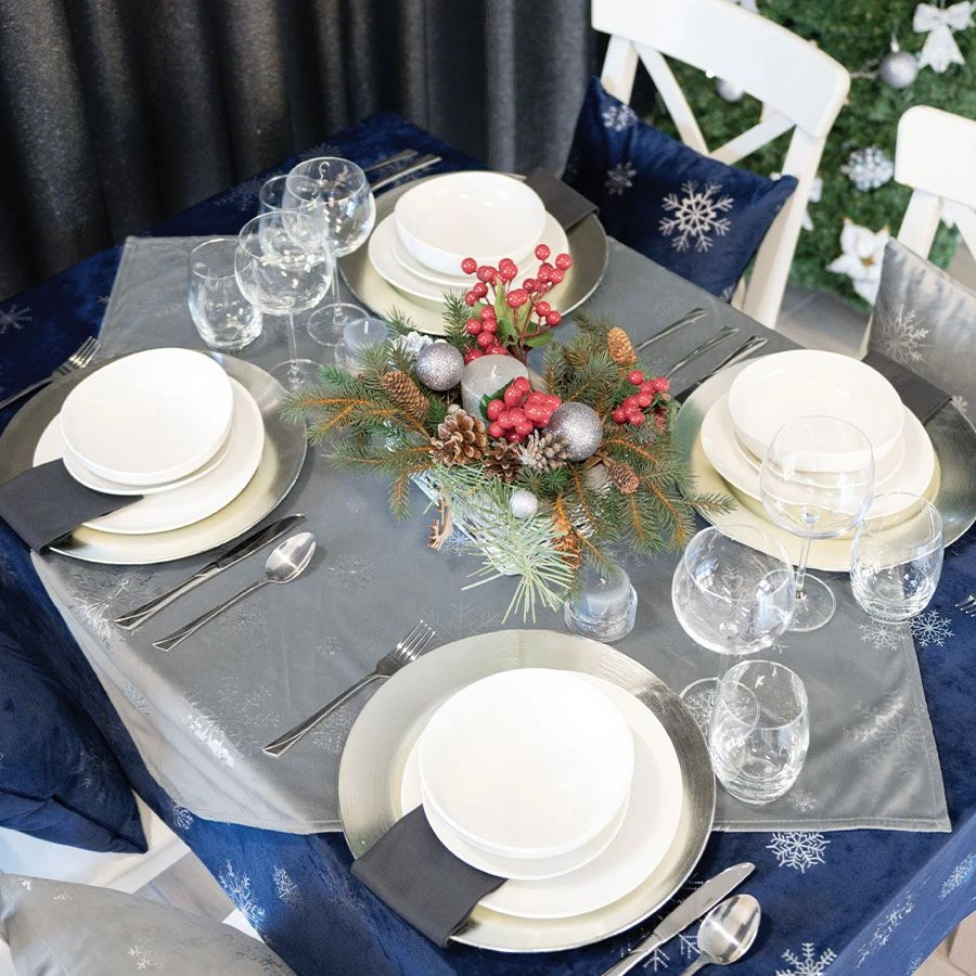 Serweta wodoodporna z tkaniny dekoracyjnej typu VELVET z metalicznym zdobieniem. Doskonale pasuje do tkaniny i innych dekoracji z tej samej serii. Rozmiar: 85x85 cm Gramatura: 200gsm Skład: 100% Poliester