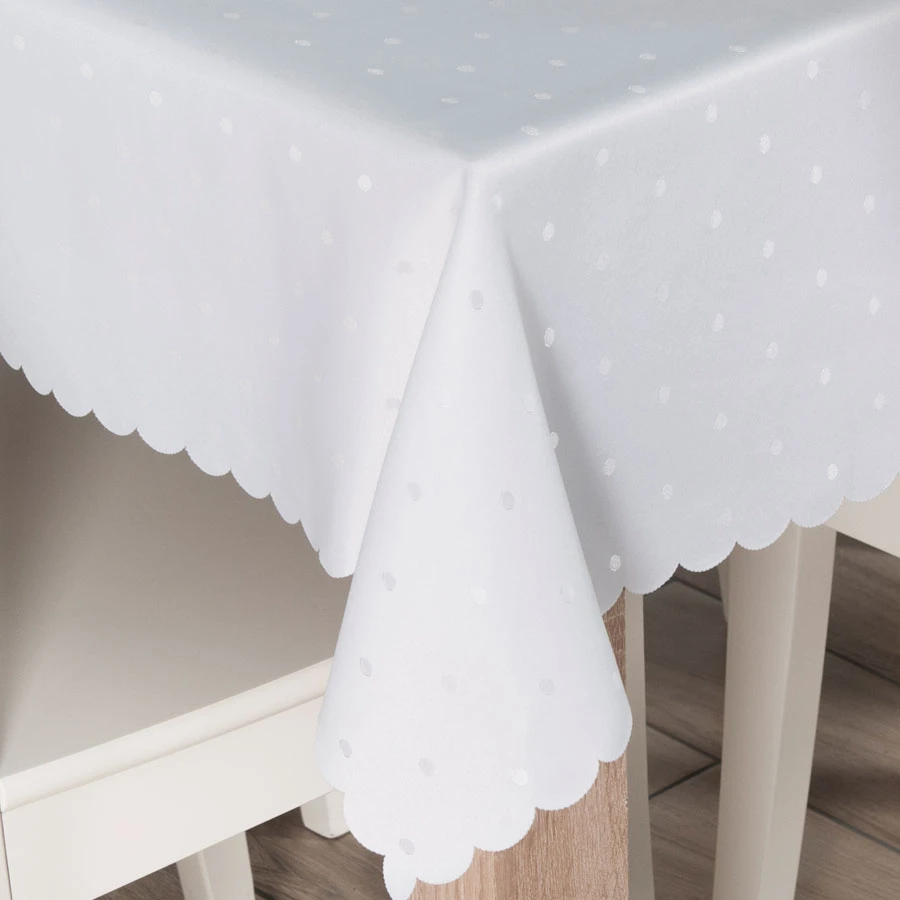 Obrus wodoodporny,brzegi wytopione ozdobną chmurką Gramatura:180g/m2 Skład:100% Poliester