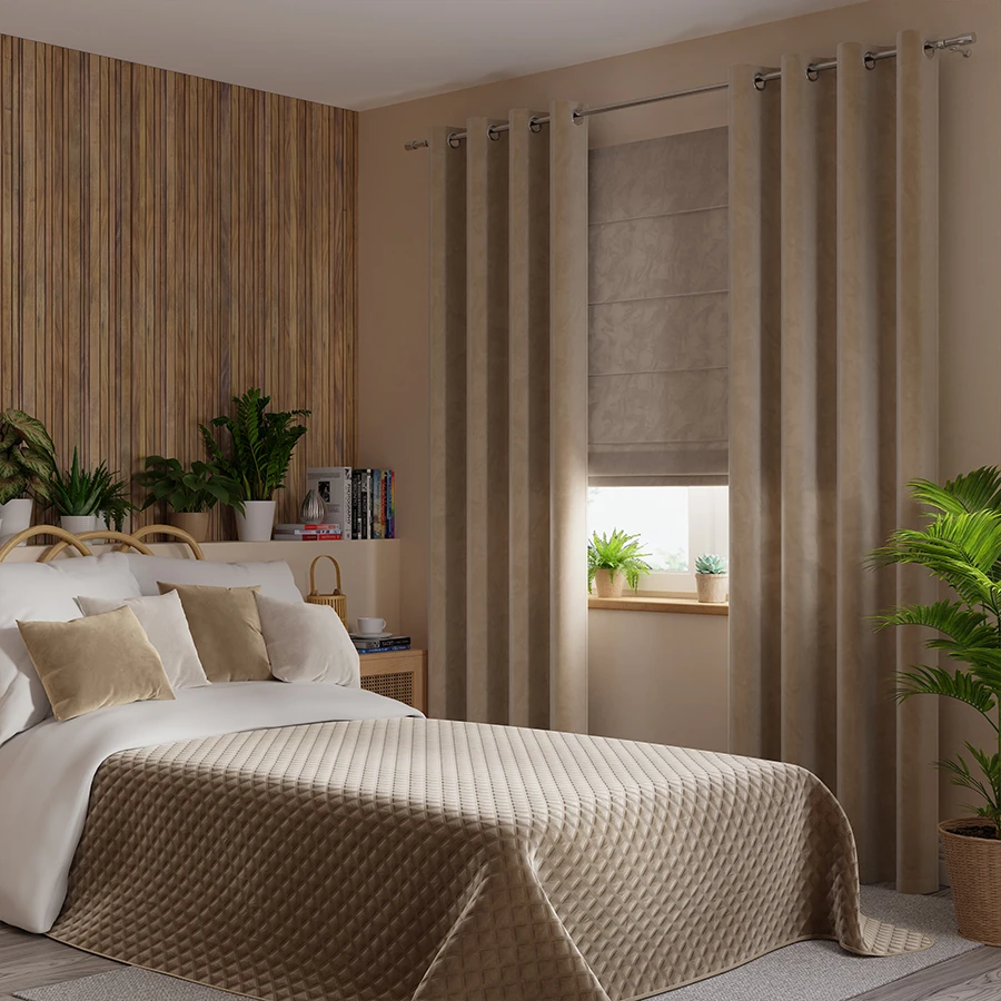Zasłona gotowa na przelotkach z bardzo miłej w dotyku tkaniny typu Velvet.Do zasłony idealnie pasuje poszewka z tej samej serii. W sprzedaży dostępna jest także tkanina pod taką samą nazwą artykułu. Ilość przelotek: 8 Skład: 100% Poliester Gramatura: 210 GSM