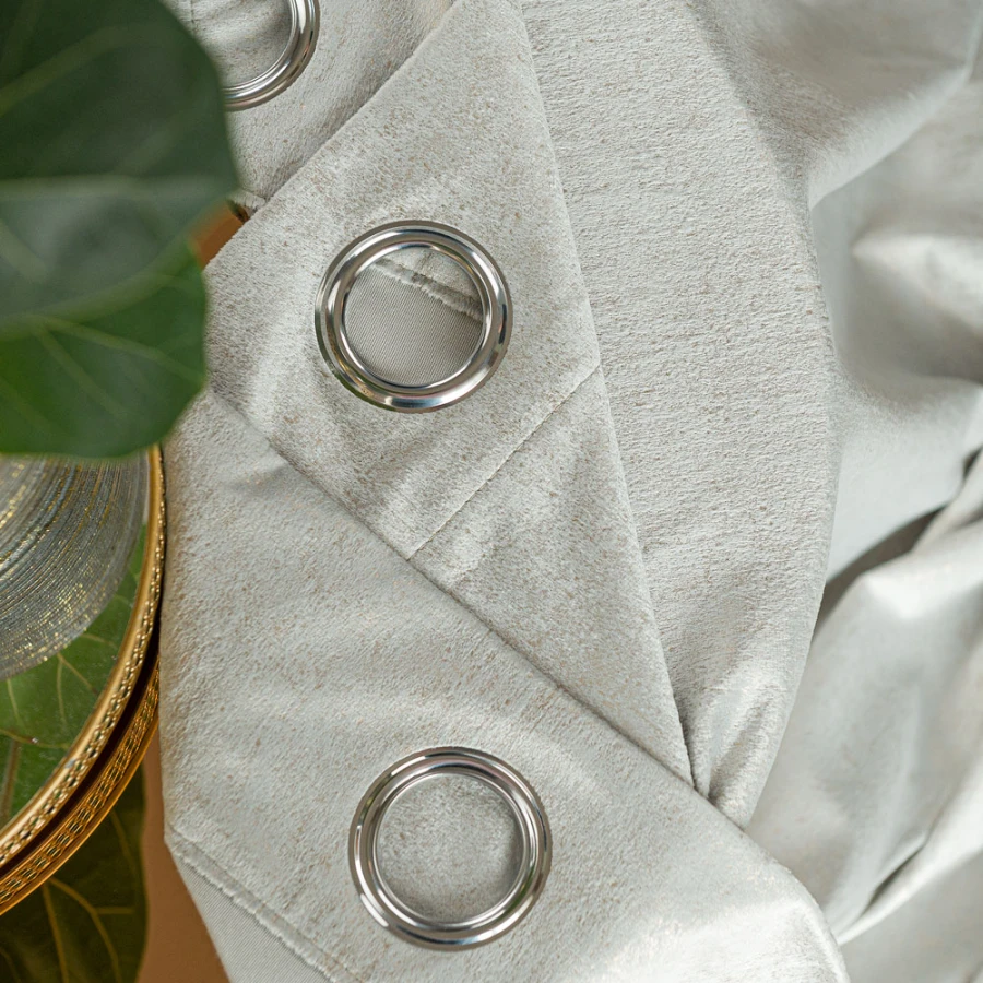 Zasłona gotowa na przelotkach o wymiarach 140 x 250 cm. Wykonana z welwetowego materiału z subtelnym złotym połyskującym nadrukiem to połączenie elegancji i nowoczesności. Zasłona posiada 8 metalowych przelotek w kolorze srebrny chrom.Zasłony ELEONORA dostępne są w dwunastu kolorach. Skład: 100% Poliester Gramatura: 210g/m2Towar pakowany po 22 szt. w kartonie.
