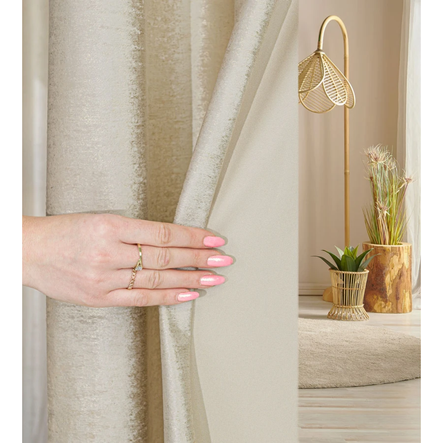 Zasłona gotowa na przelotkach o wymiarach 140 x 250 cm. Wykonana z welwetowego materiału z subtelnym złotym połyskującym nadrukiem to połączenie elegancji i nowoczesności. Zasłona posiada 8 metalowych przelotek w kolorze srebrny chrom.Zasłony ELEONORA dostępne są w dwunastu kolorach. Skład: 100% Poliester Gramatura: 210g/m2Towar pakowany po 22 szt. w kartonie.