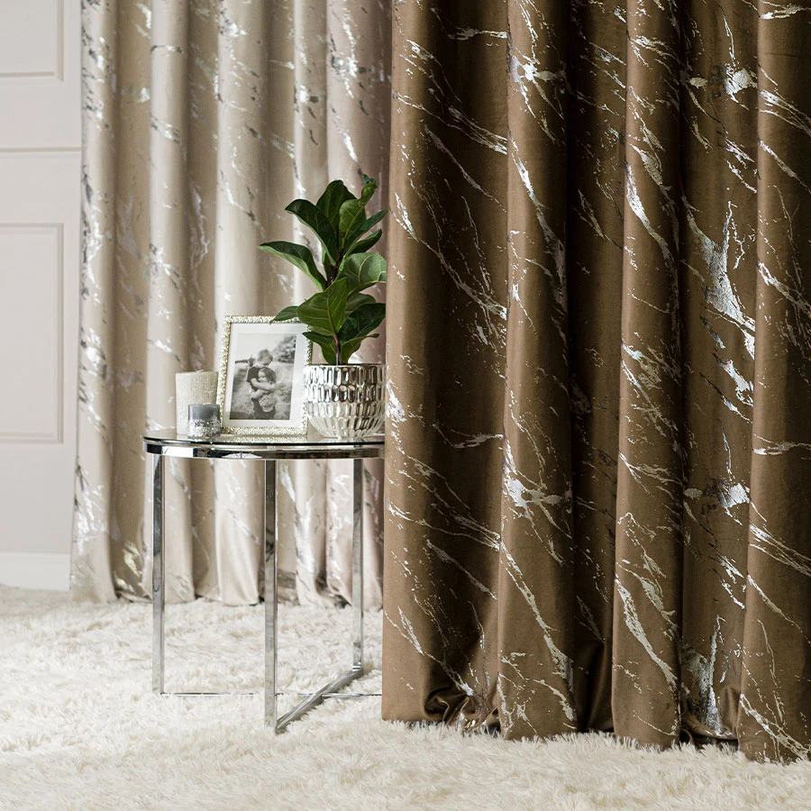 Zasłona gotowa na przelotkach o wymiarach 140 x 250 cm. Wykonana z welwetowego materiału z dekoracyjnym, jednostronnym srebrnym marmurowym nadrukiem to połączenie elegancji i nowoczesności.Zasłony MARMA dostępne są w dwunastu kolorach. Skład: 100% Poliester Gramatura: 210g/m2Towar pakowany po 22 szt. w kartonie.