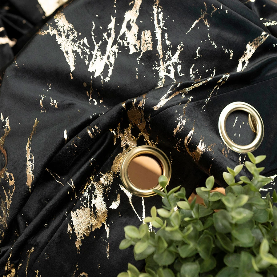 Przenieś swoje wnętrze na wyższy poziom luksusu dzięki zasłonie MARMA w rozmiarze 140x250 cm! Welwetowa tkanina o głębokim, czarnym kolorze zdobiona została efektownym, przecieranym złotym nadrukiem w stylu marmuru. To oryginalna i bardzo elegancka dekoracja okienna, która z łatwością podkreśli charakter zarówno nowoczesnych, jak i bardziej klasycznych aranżacji. Subtelny połysk, miękkość materiału i ponadczasowa kolorystyka sprawią, że Twój dom nabierze wyrafinowanego stylu, a każde spotkanie przy oknie stanie się wyjątkowe. 🖤✨