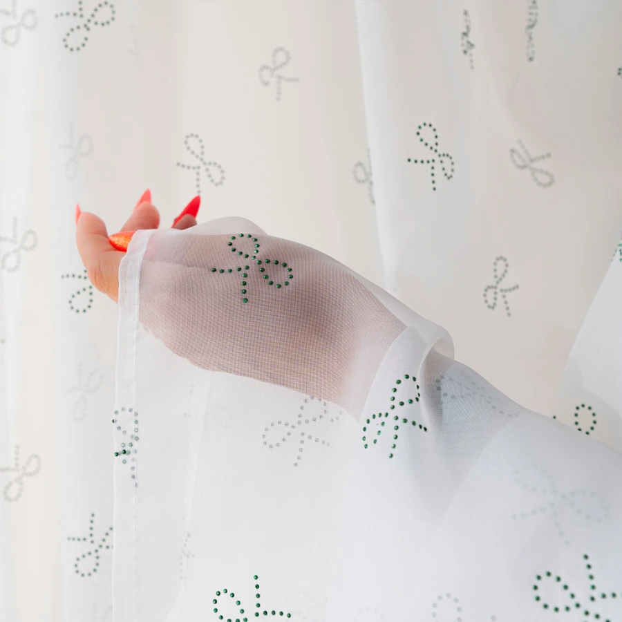Pozwól się oczarować dekoracyjną firanką RIBBON w rozmiarze 140x250 cm – uszytą z przewiewnego, białego woalu ozdobionego zielonym wzorem, który przypomina finezyjne kokardki. Delikatny, nieprzytłaczający motyw wprowadza do każdego wnętrza nutę świeżości i wiosennej energii. Subtelna tkanina swobodnie przepuszcza światło, jednocześnie zapewniając dyskretną osłonę przed tym, co na zewnątrz. Zastosowanie taśmy marszczącej pozwala dopasować szerokość do karnisza od 70 do 95 cm – firanka prezentuje się zjawiskowo zarówno solo, jak i w zestawie z drugą sztuką. 💚✨